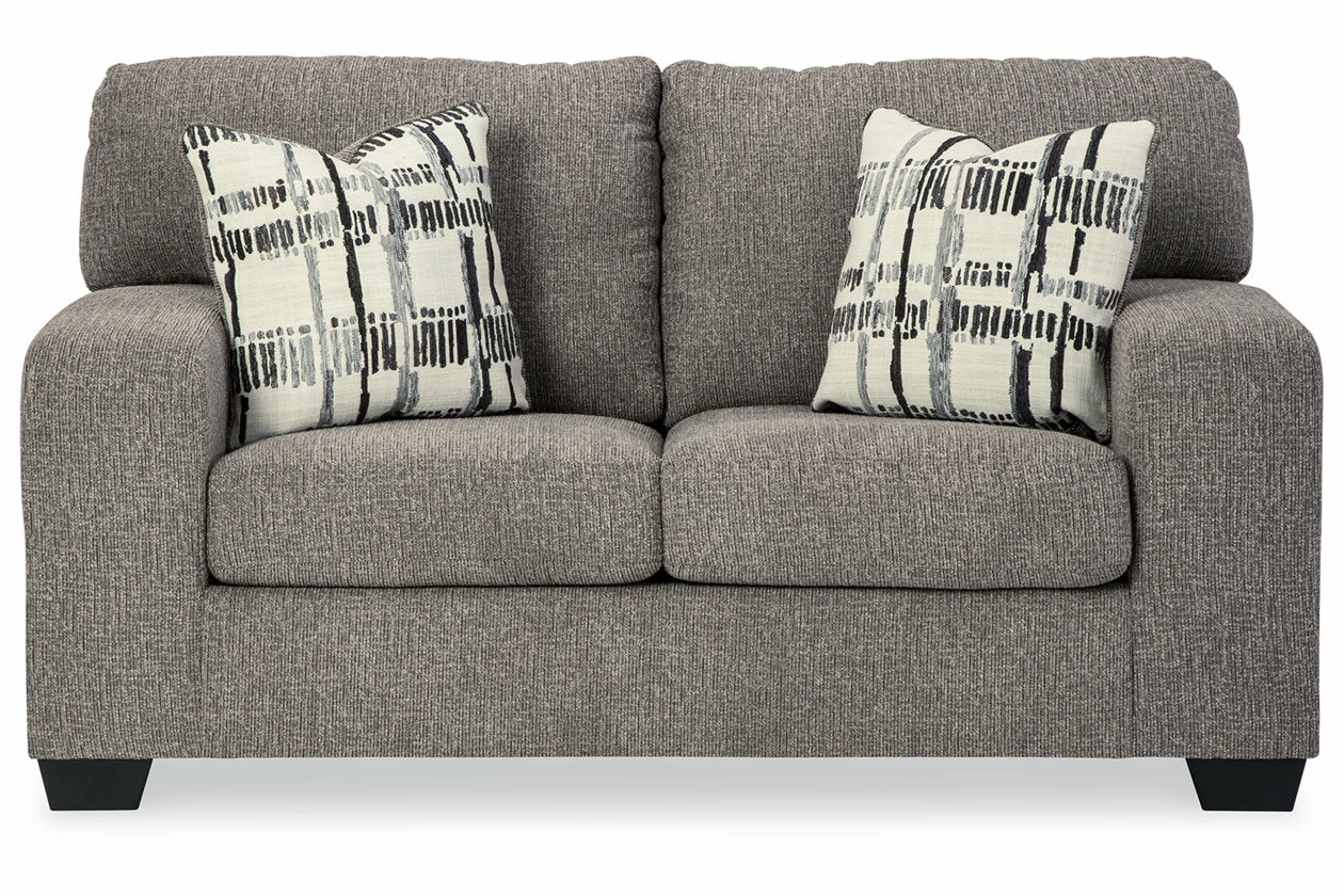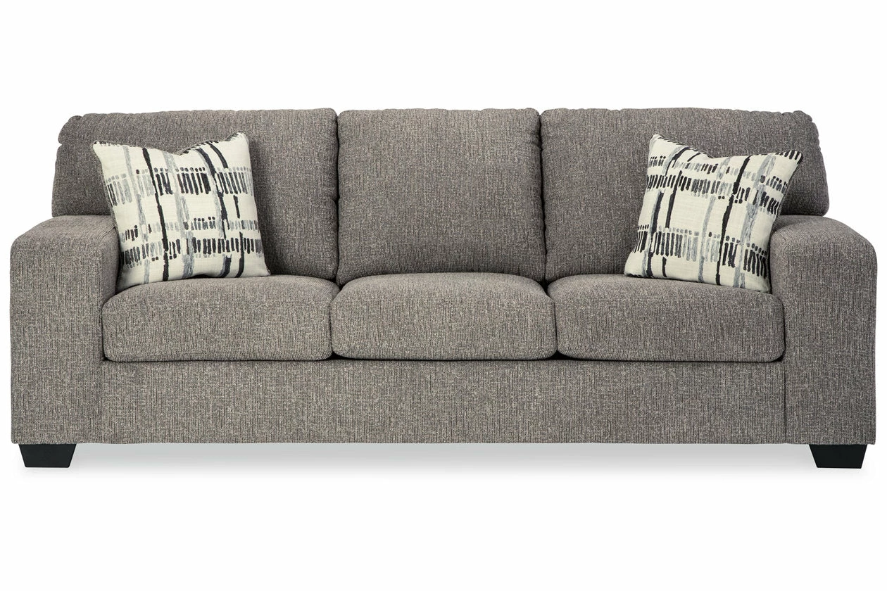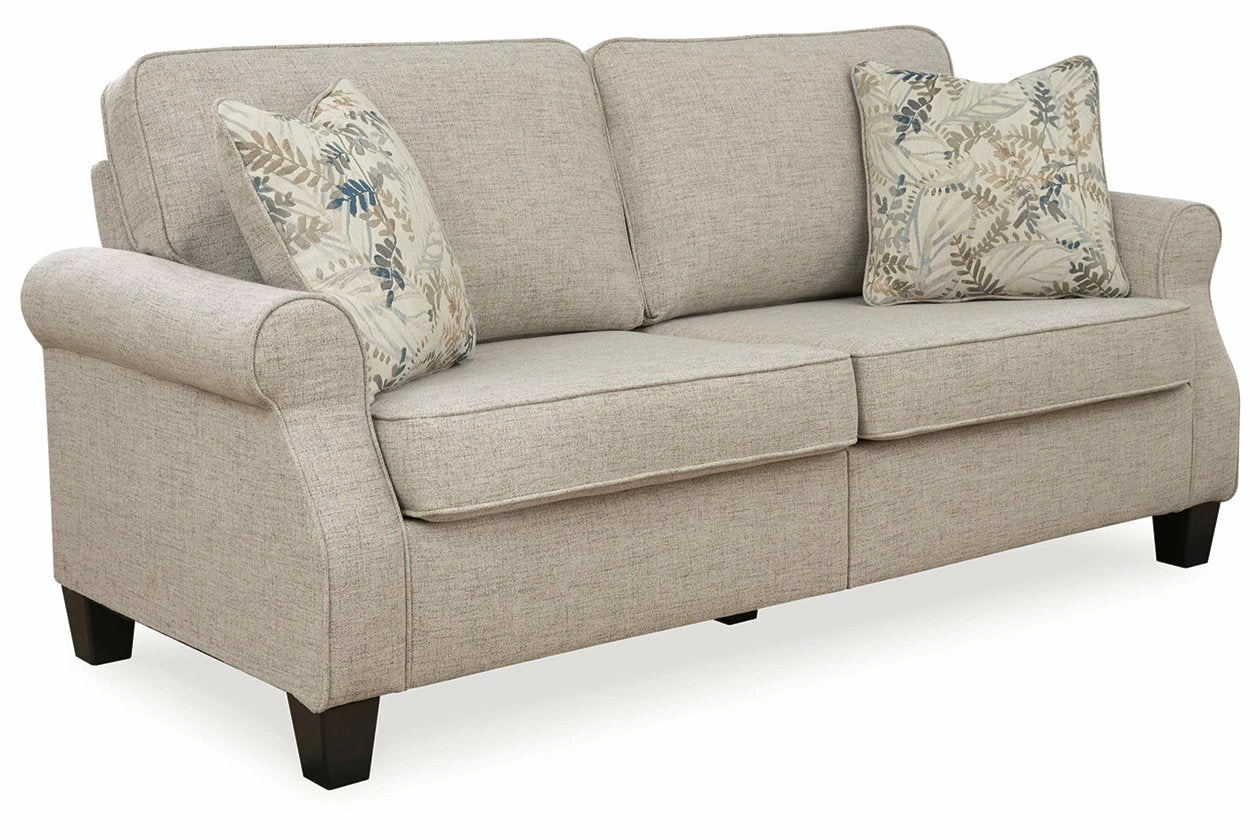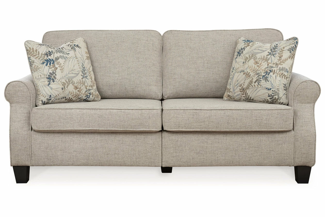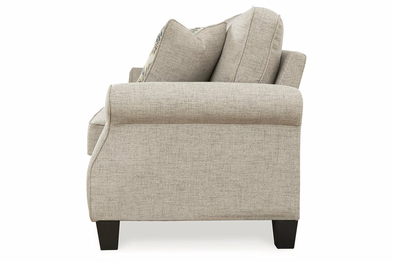 Whether your home is adorned with contemporary or American classic furnishings, this sofa has a timeless sense of elegance that’s sure to fit right in. Signature elements include roll arms and cutaway side profiling for added flair. Richly neutral and soft to the touch, the charcoal blue fabric is a brilliant reflection of your good taste that’s right on trend. Rounded cornering gives the box cushions a softened, tailored aesthetic that makes the sofa a great transitional piece of furniture.