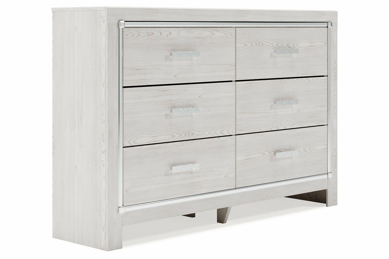 The epitome of fashion-forward design, this dresser is a beautiful blend of style and luxury. Shiny chrome-tone accents, a pearlized finish and mosiac pulls bring a glam touch to the richly rustic appearance. Six smooth-gliding drawers provide plenty of storage space for your wardrobe needs.