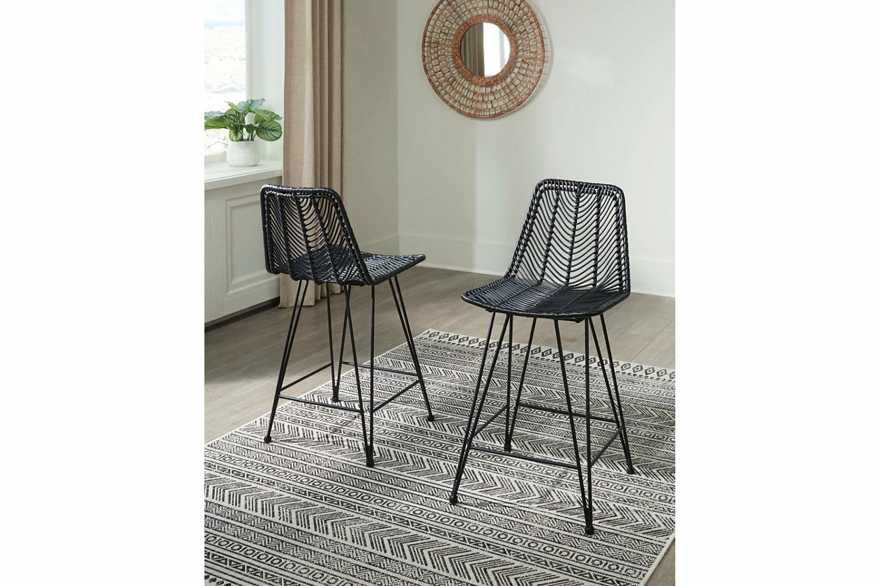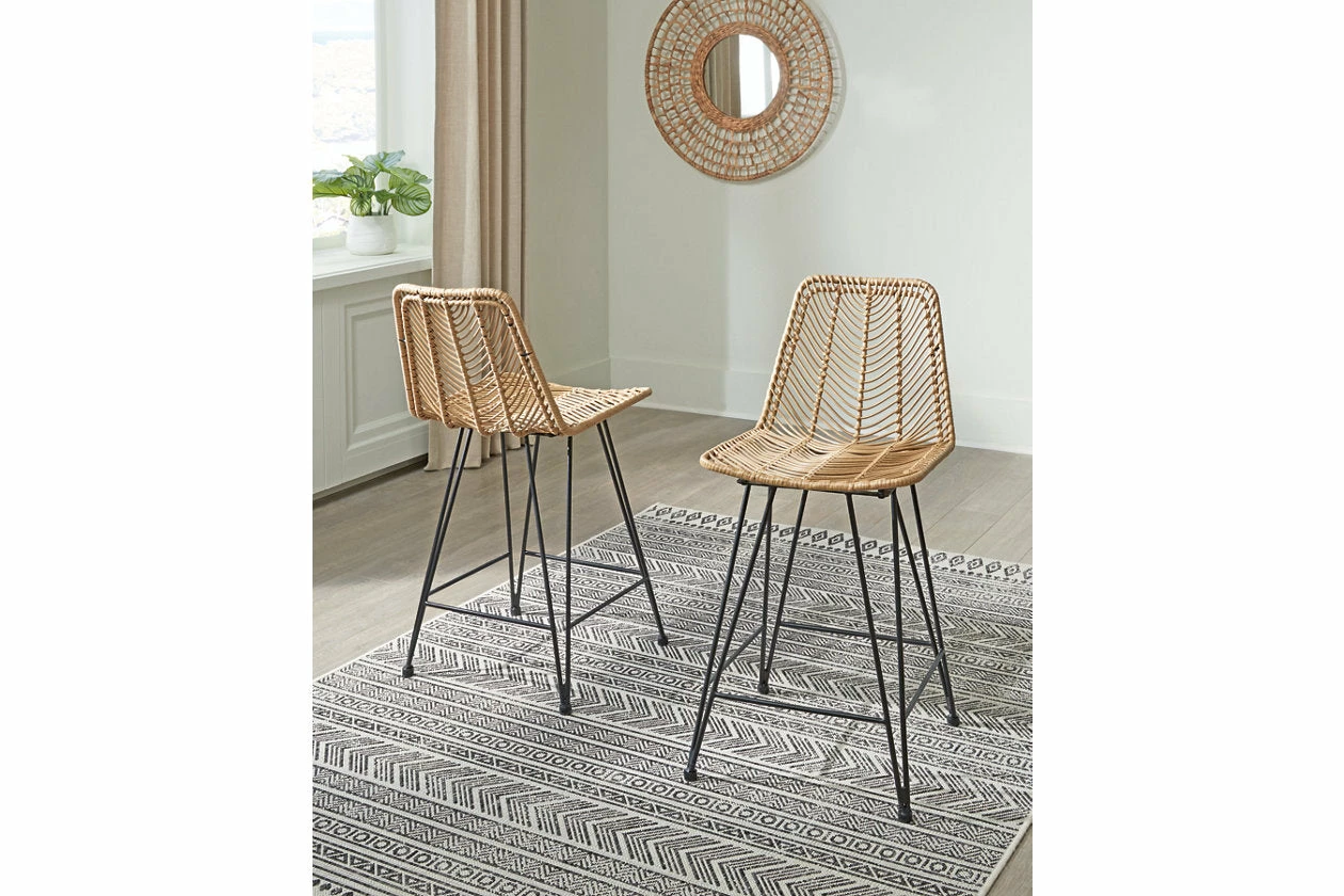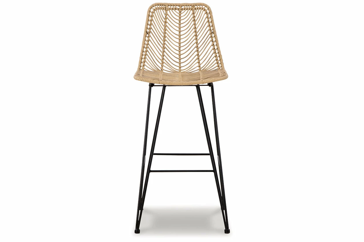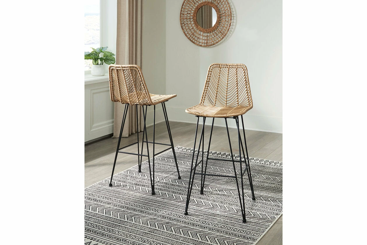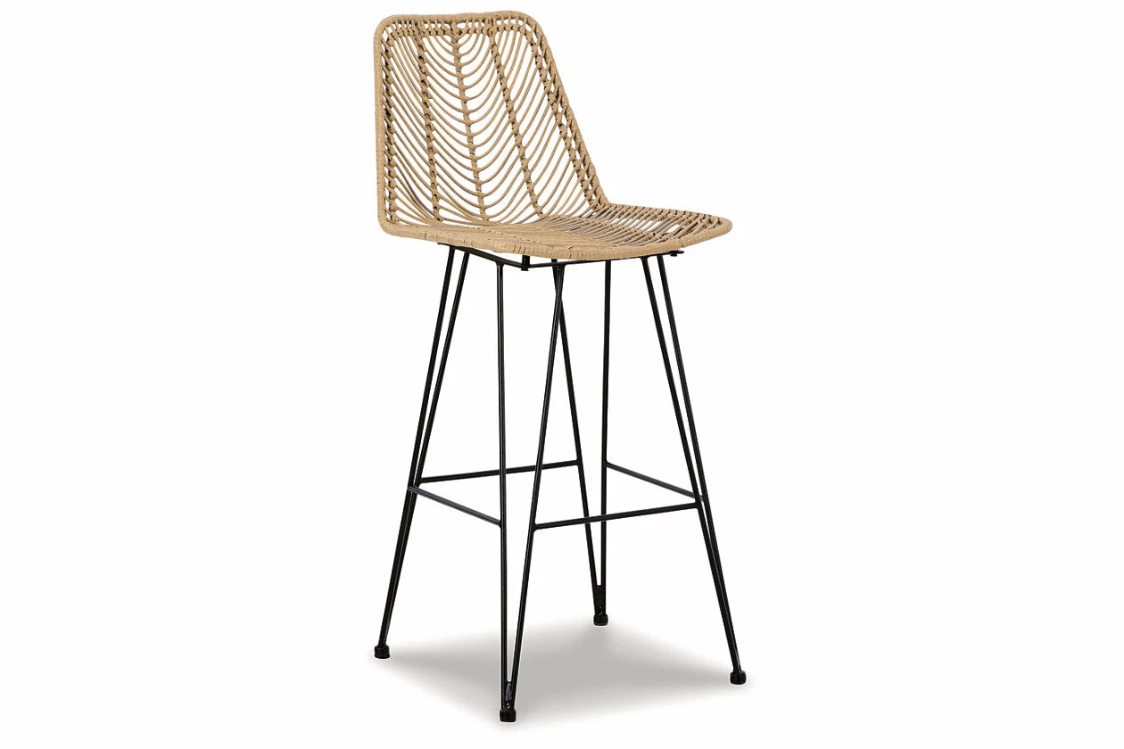 Open the door to sleek, organic style. This bar stool sports an on-trend bucket seat, with handwoven resin fiber infusing the piece with natural beauty. Balancing casual and contemporary approaches to seating, this bar stool brings an effortlessly curated look to your dining room.