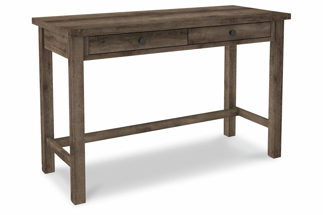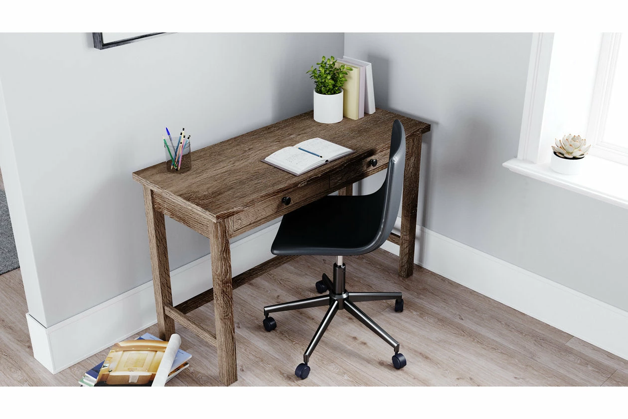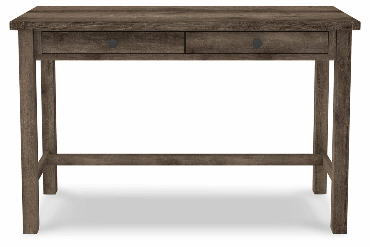 Clean-lined and contemporary (but far from stark), this home office desk is a fresh style awakening. Its sleek scale makes it a natural fit for smaller spaces. Effortlessly combining modern farmhouse design with urban attitude, the replicated weathered oak grain plays perfectly with the chic-yet-earthy aesthetic.