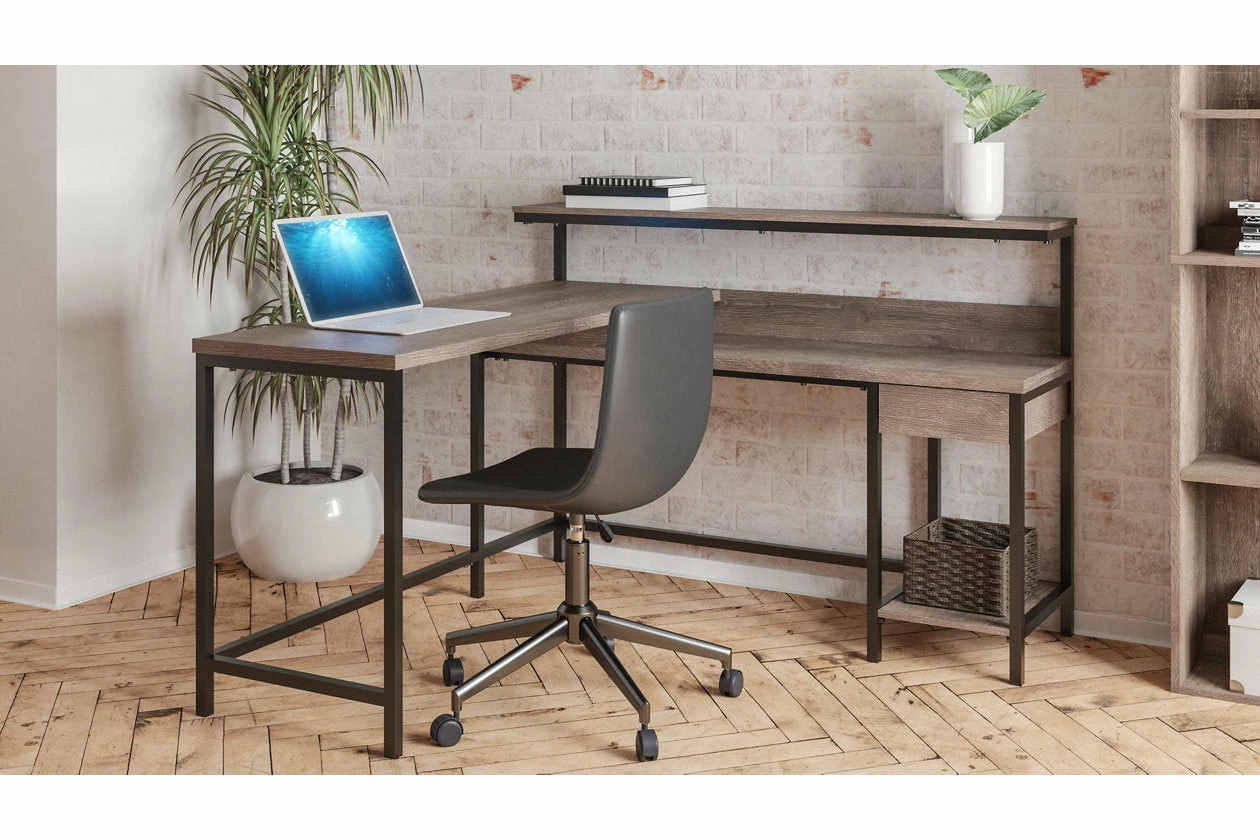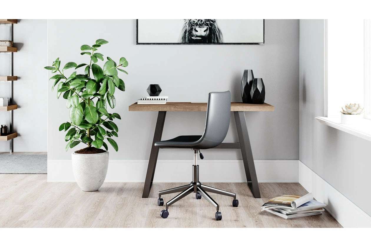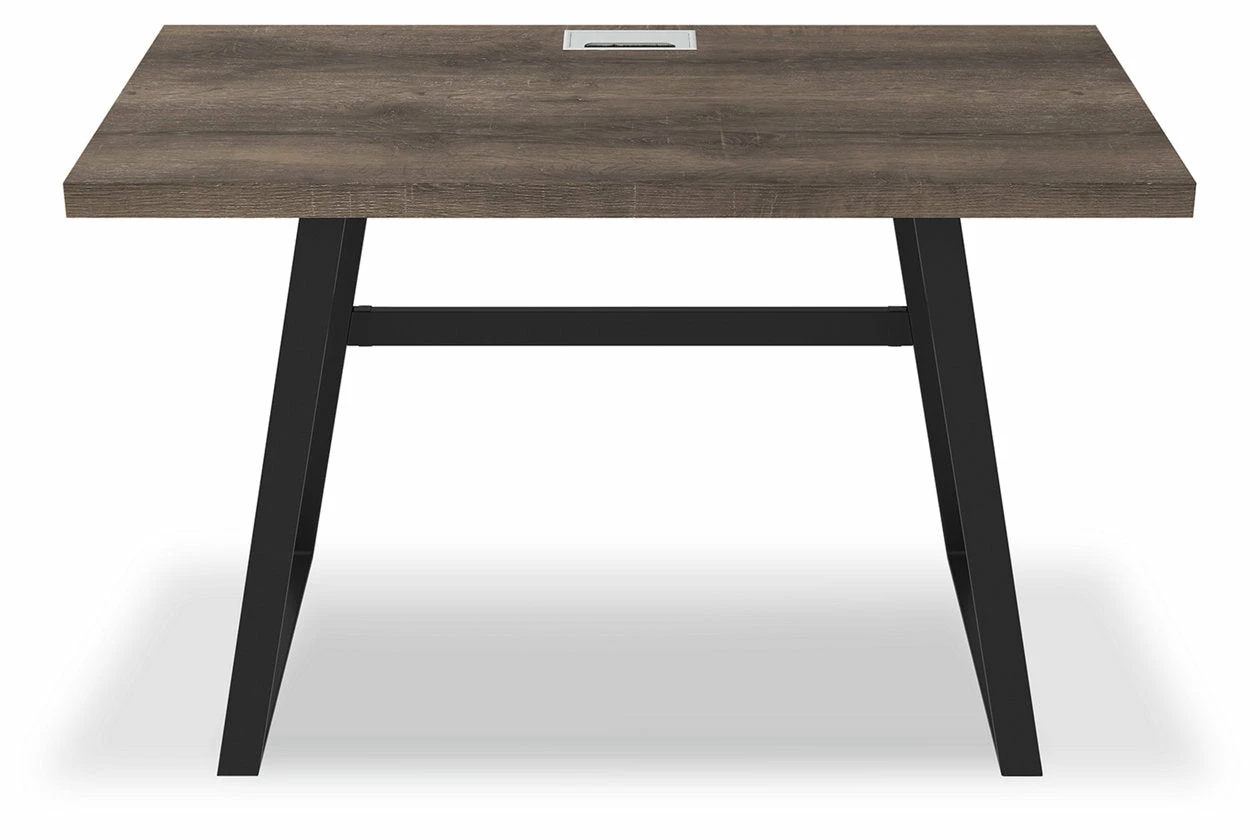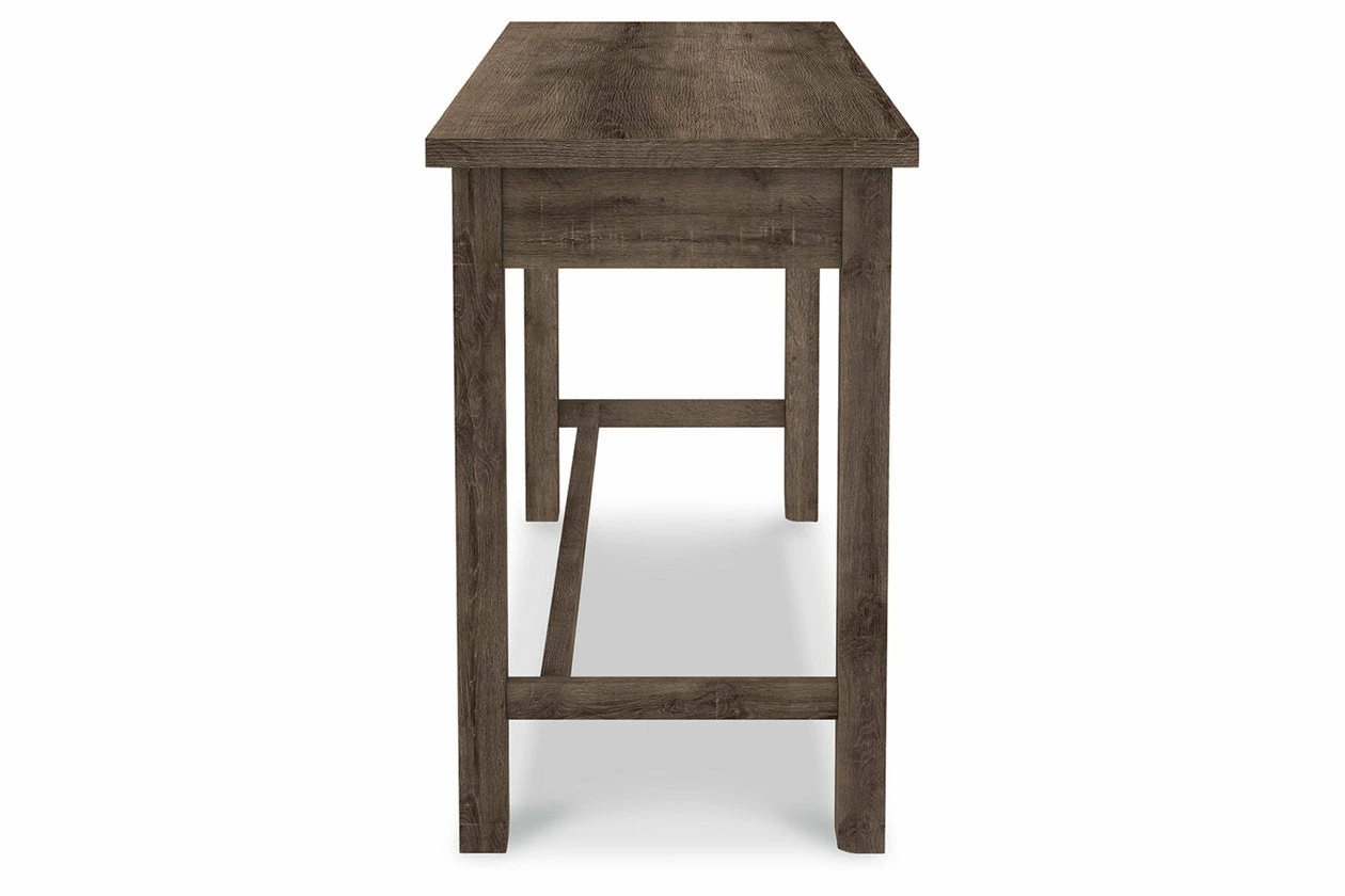 Clean-lined and contemporary (but far from stark), this home office desk is a fresh style awakening. Its sleek scale makes it a natural fit for smaller spaces. Effortlessly combining modern farmhouse design with urban attitude, the replicated weathered oak grain plays perfectly with the chic-yet-earthy aesthetic.