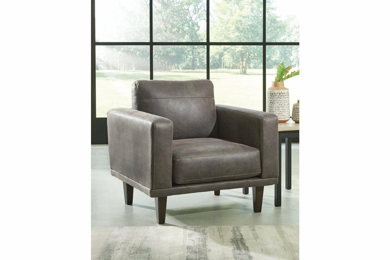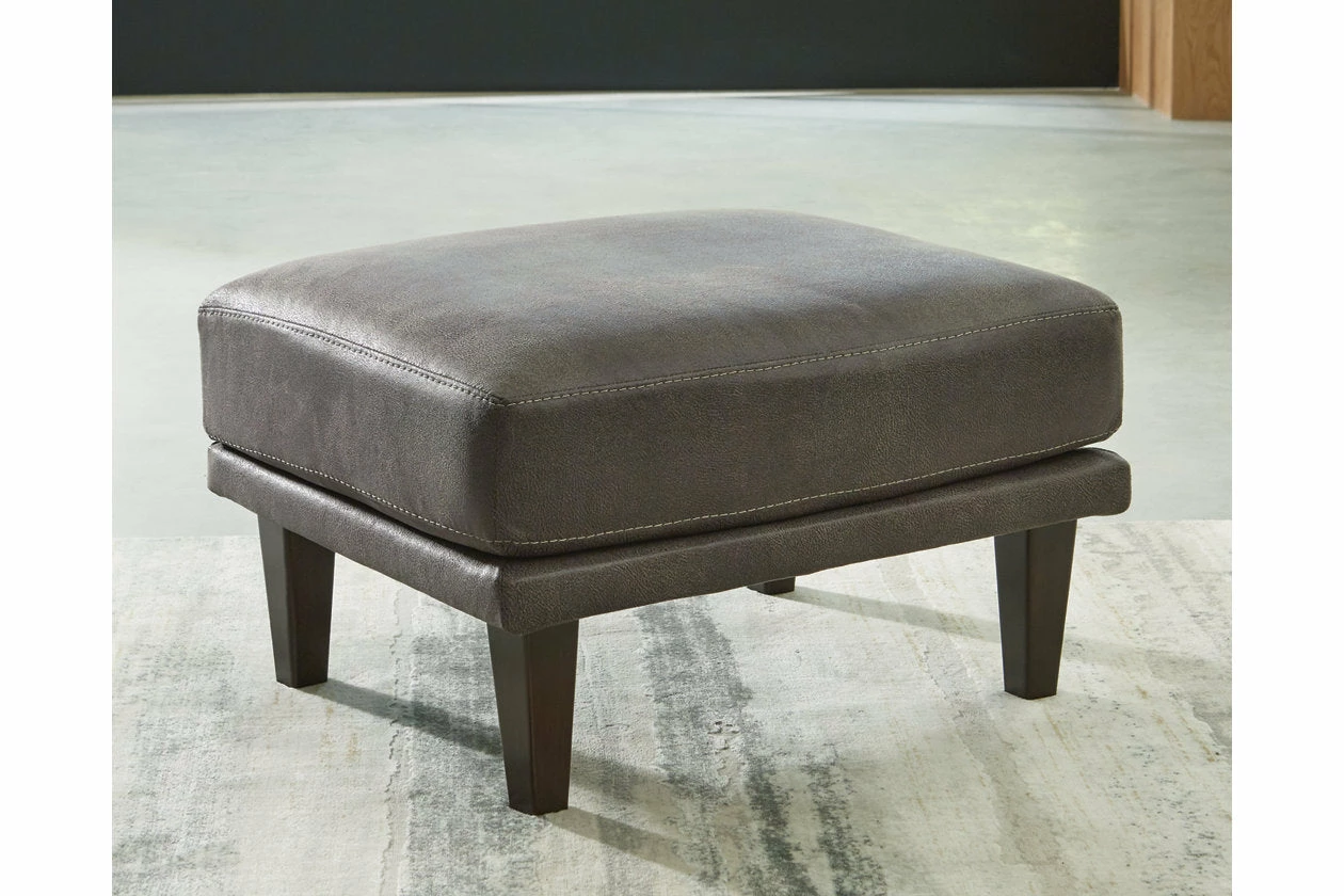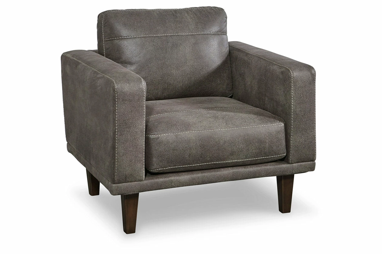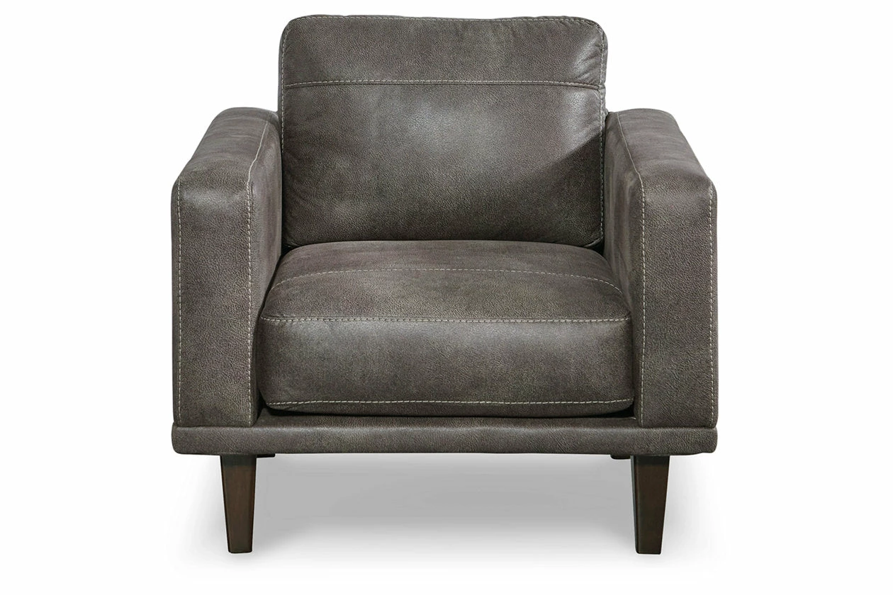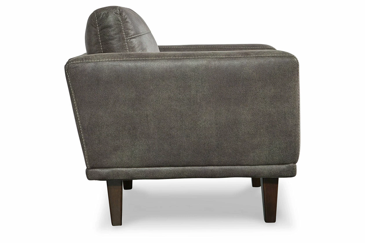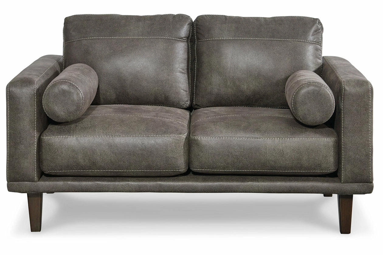 For a fresh spot in your space, turn to this sofa chaise. The invigorating piece breathes warmth into your home with its soothing smoke-colored faux leather upholstery, modern bolster pillows and tapered legs. Wind down at the end of a long day and sink into this canyon of comfort.