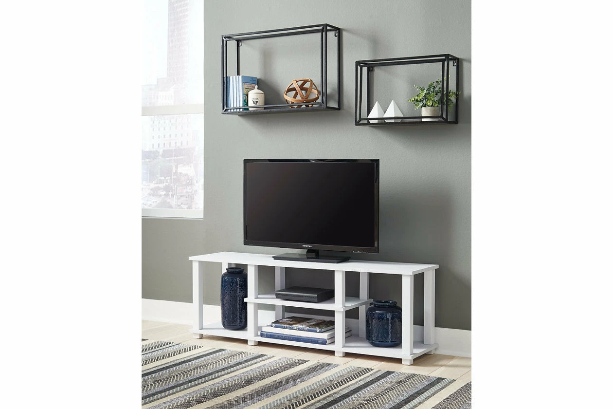 This TV stand delivers the functionality you crave with the casual contemporary style that suits your taste. The white finish and open display shelf maximize your available space for audio and video accessories.