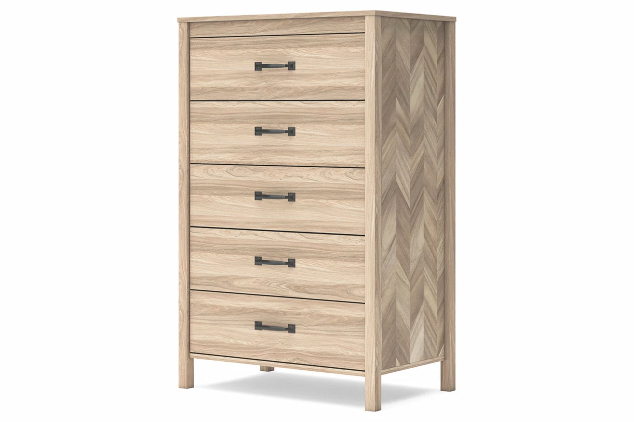 Transform your bedroom into an instant sanctuary. This dresser introduces a touch of mid-century modern style combining a two-tone finish and unique chevron pattern that is sure to enhance the design element to any bedroom. Six spacious drawers with ball bearing glides offer a smooth opening and closing of the drawers. Catering to your busy lifestyle and built to last, it is ready to assemble in the comfort of your home.