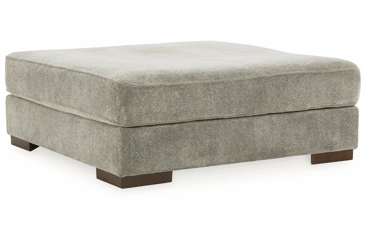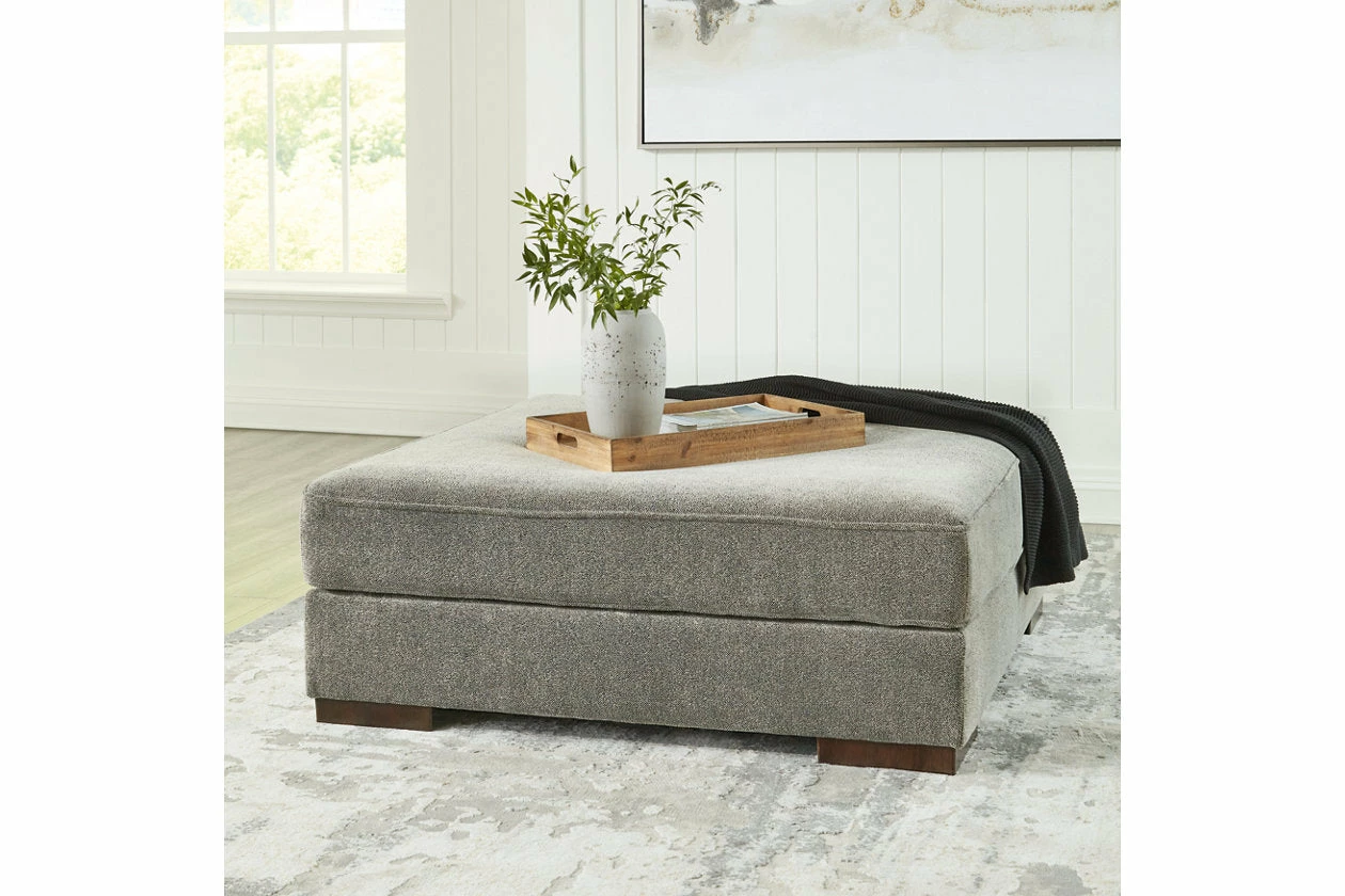 Get a leg up on comfort with this oversized accent ottoman. Sumptuously soft smoke gray chenille upholstery welcomes your feet with open arms. A versatile performer, this stylish stool steps in as a serving spot for impromptu entertaining.