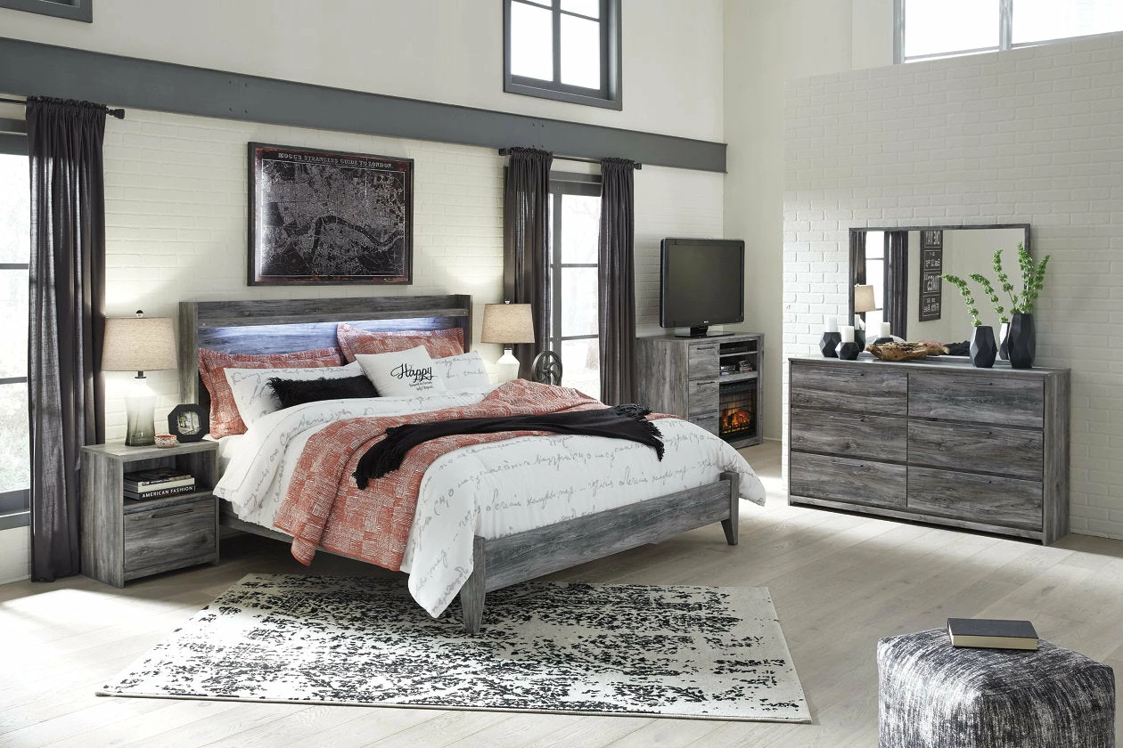 Drift off in the beachy style of this bedroom set. Its driftwood-inspired smoky finish gives a rustic look that’s perfect for your island oasis. Love to read in bed? You’re sure to find the cool LED lighting on the headboard such a bright idea. A medley of storage drawers also come in mighty handy.