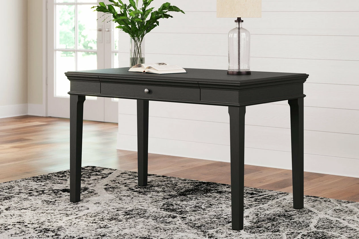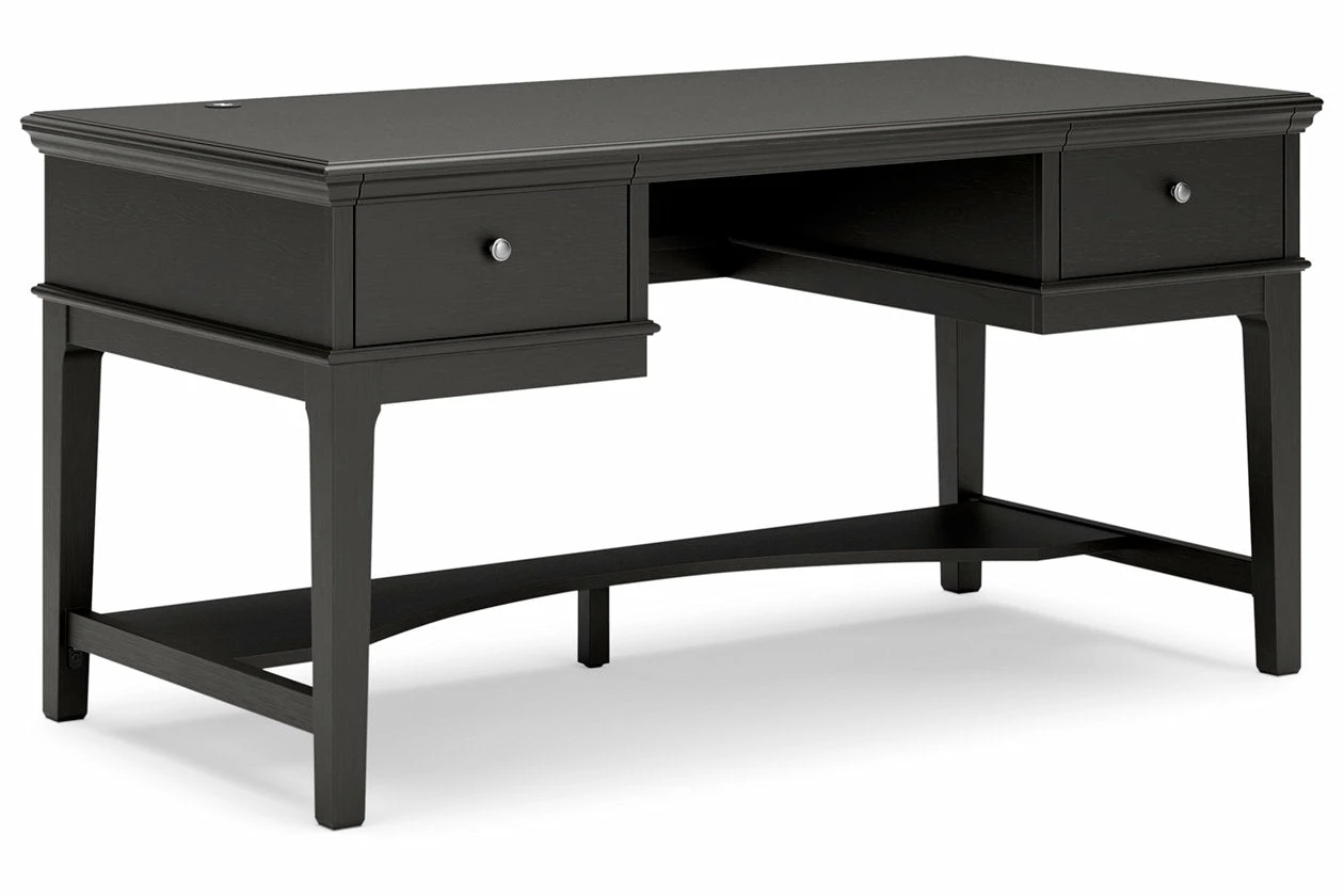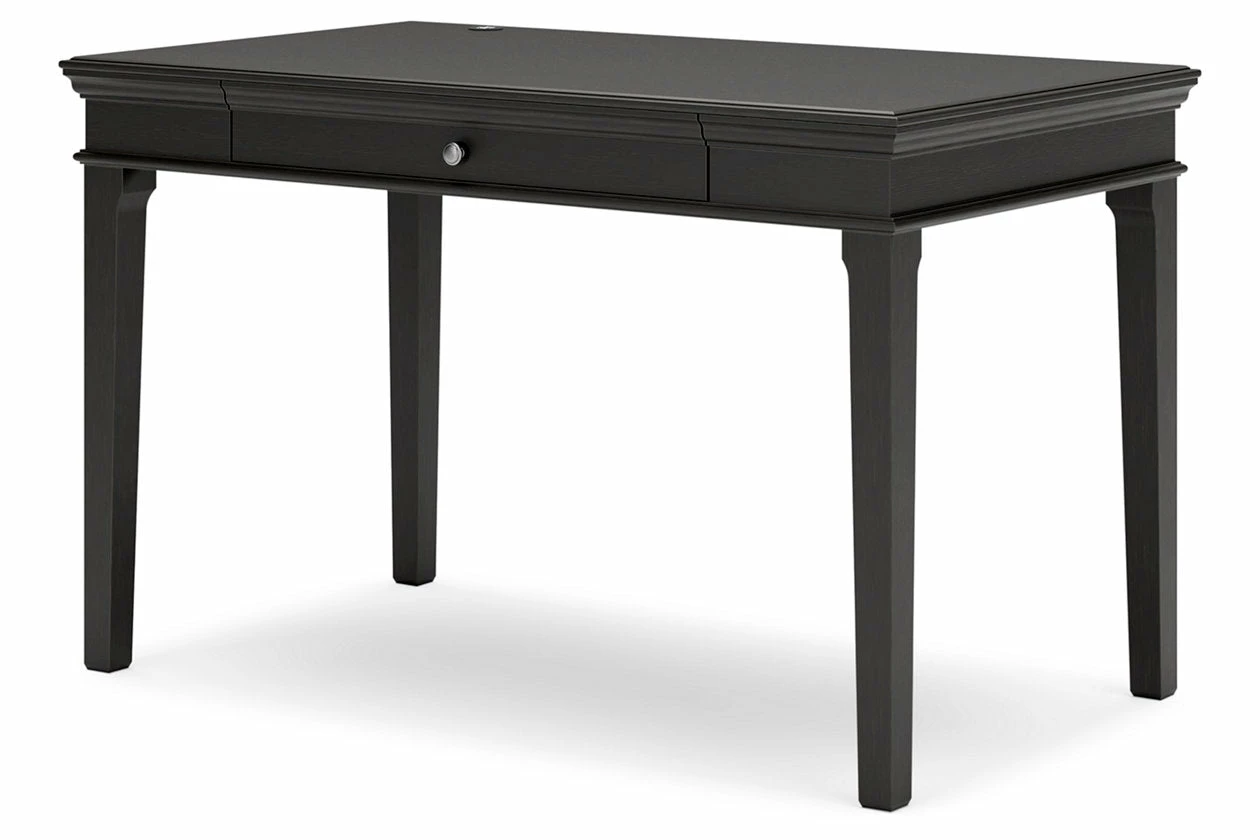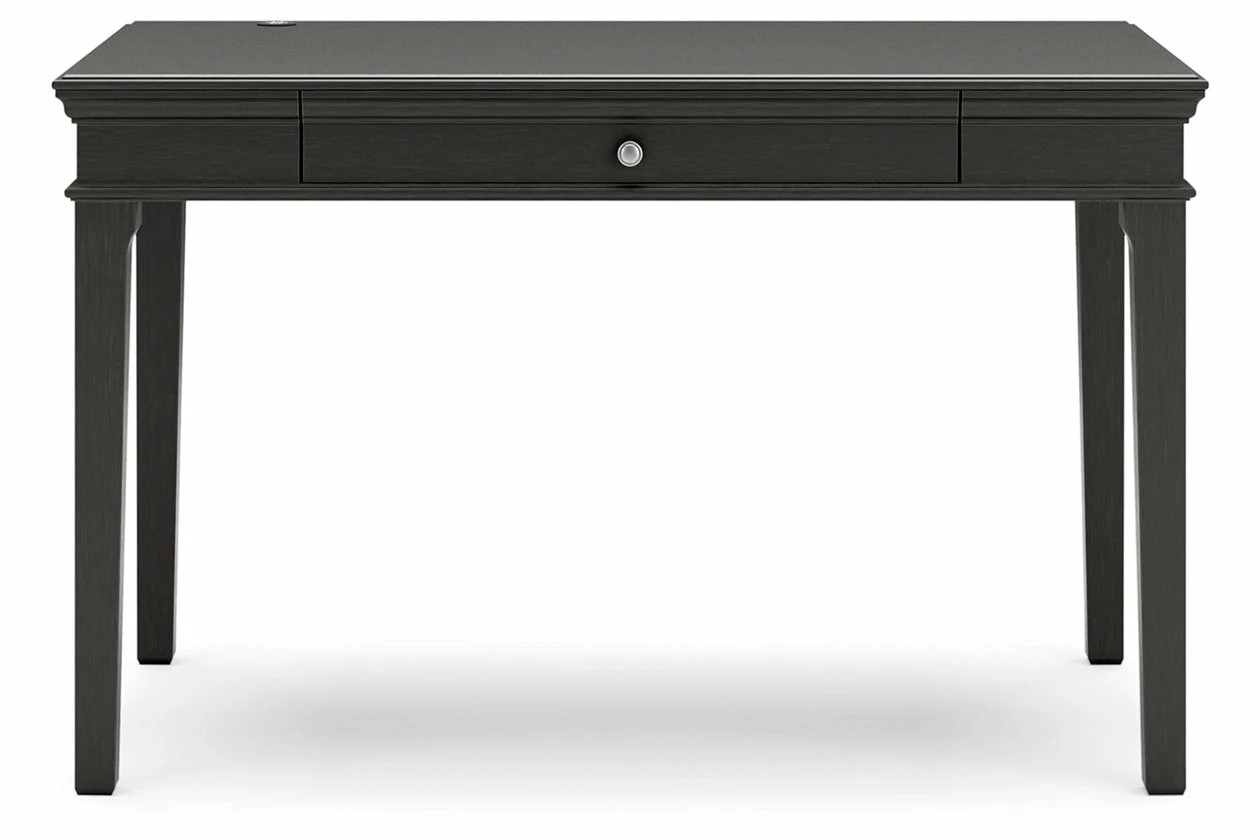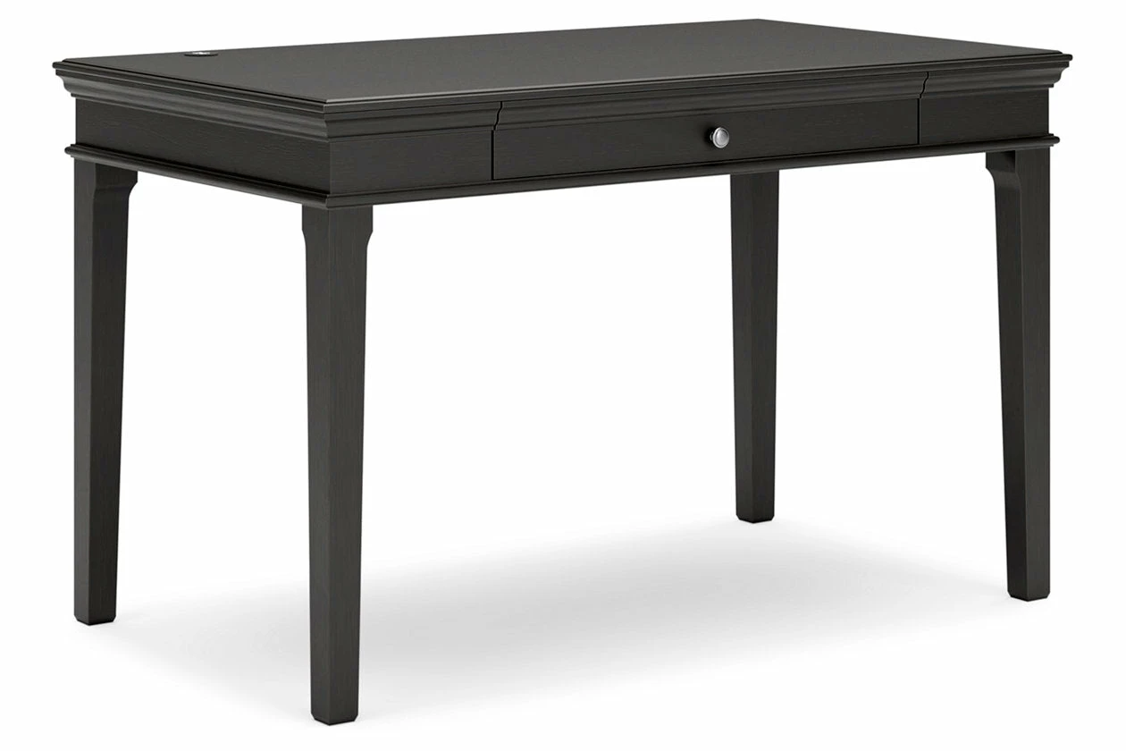 Make a style statement with this home office storage leg desk. Its traditional design is updated with an on-trend vintage black finish. The desk’s two drawers make for a well-organized workspace, while USB charging makes staying productive that much easier.