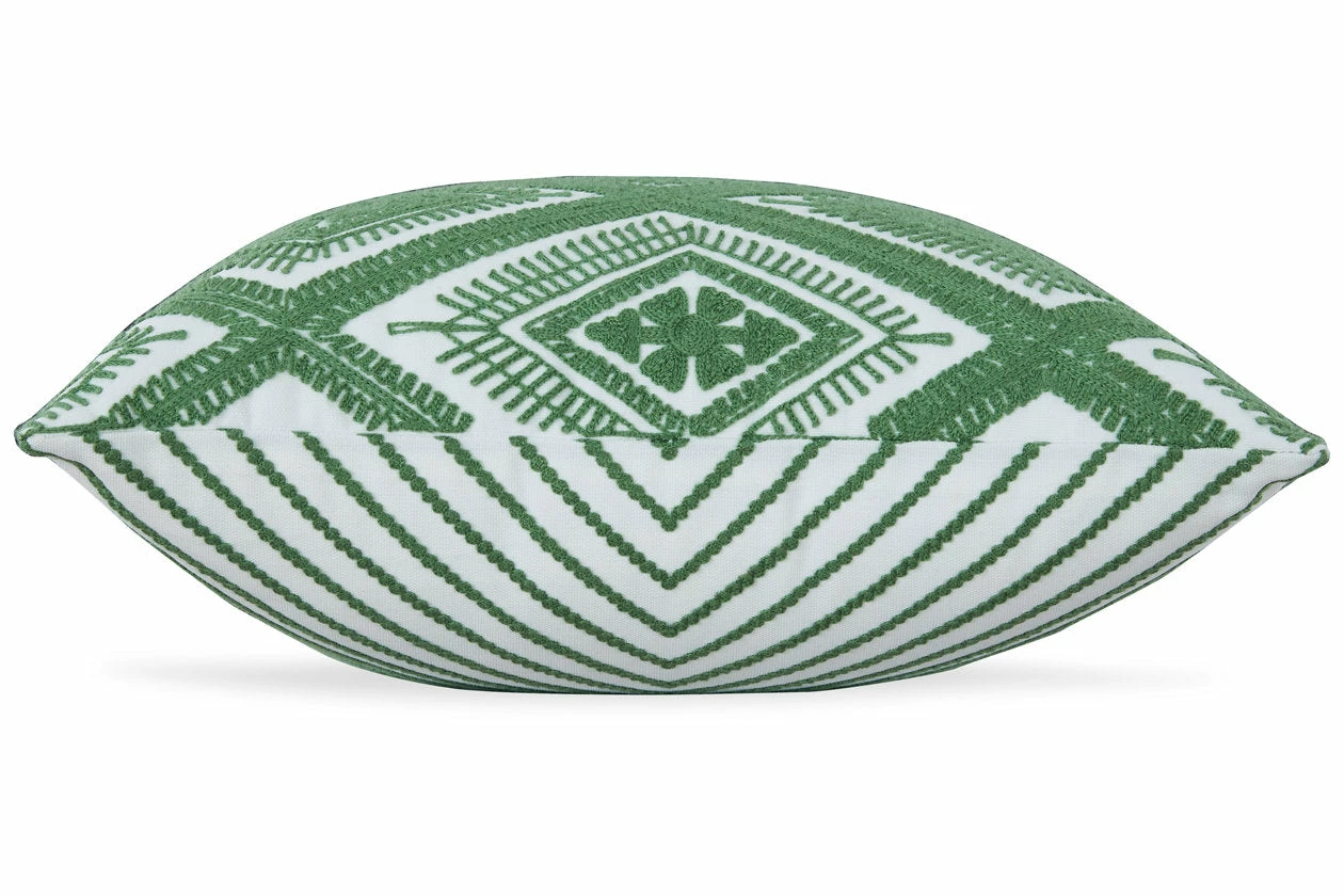 Add a splash of vibrant color and radiant style to your furnishings with this accent pillow. Its diamond design in green and white adds an eye-catching scheme to indoor/outdoor benches, chairs and sofas.