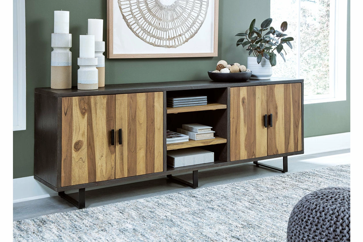 In a beautiful blend of solid woods with unique color variations, this accent cabinet is a refreshing nod to nature. The handsome hues are a perfect addition to your living room or home office. As teak doors create contrast against dark mango wood, raw meets refined. This storage cabinet is a natural fit, equally at home in casually cool and urban chic settings.