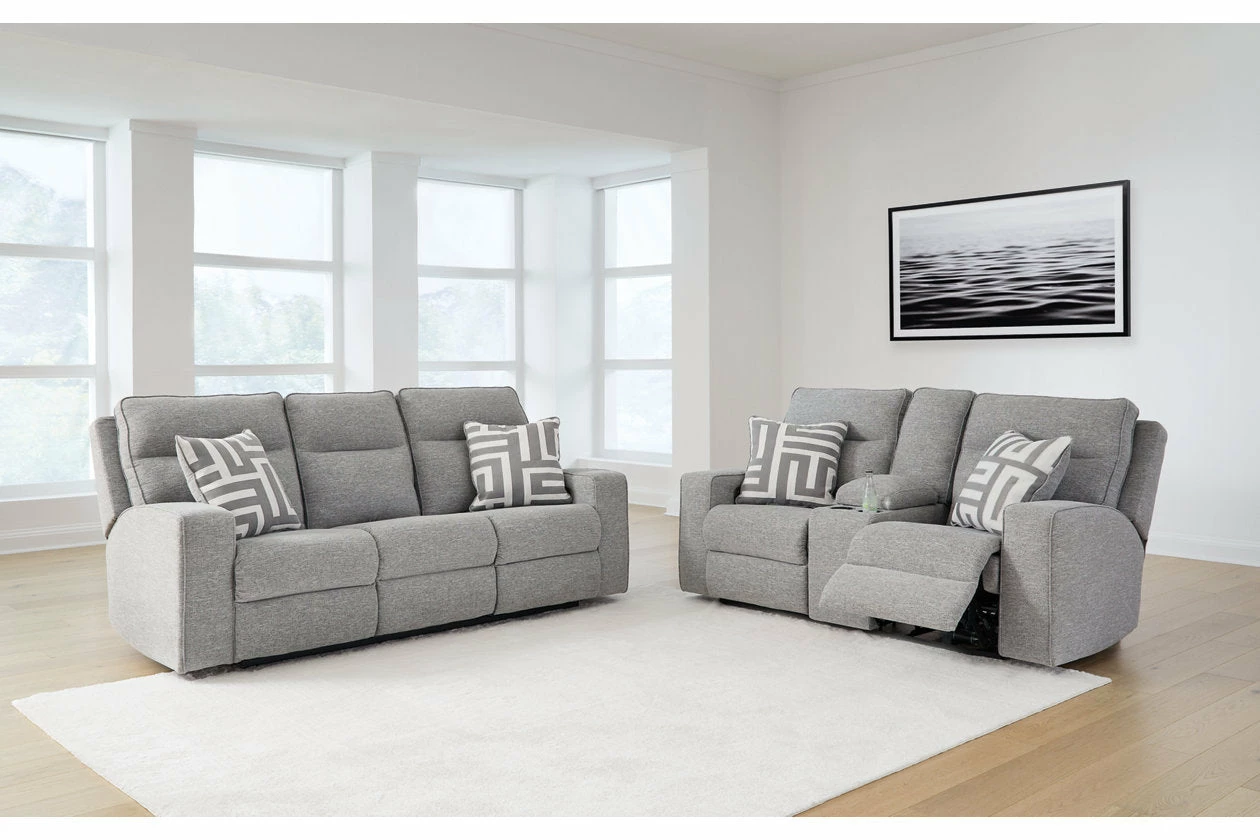 If style is the question, then this power seating package is the answer. Its clean-lined profile is beautifully contemporary. Simply sit back, chill out and recline away—this set is designed to be your favorite seat in the house.
