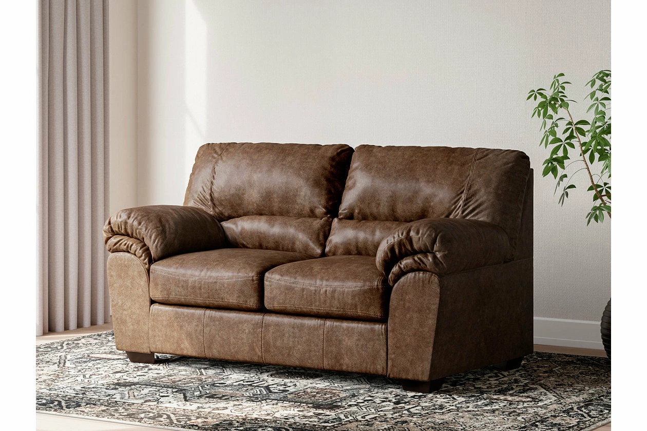 If you love the cool look of leather but long for the warm feel of fabric, you’ll find this loveseat fits the bill beautifully. Rest assured, the textural, multi-tonal upholstery is rich with character and interest—while plush, pillowy cushions merge comfort and support with a high-style design.