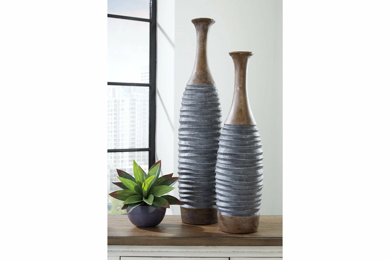 Add texture and interest to your space with this set of two vases. Made of a composite paper material, these sculptural objects make it easy to cut and paste design brilliance into your home decor.
