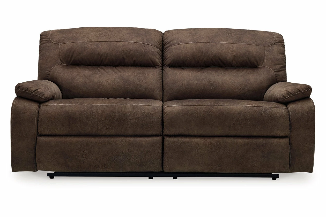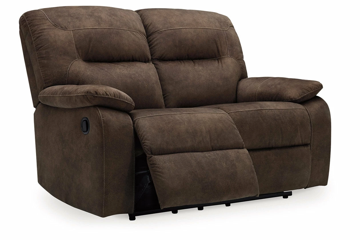 Looking for a sleek 2-seater? This reclining sofa is your saving grace. Coffee brown microfiber cover is soft to the touch and padded for your comfort. Beautiful lines exhibit exceptional craftsmanship. Smaller-than-normal scale brings quality to even compact spaces. Now you can worry less about finding the perfect recliner for your room and relax more.