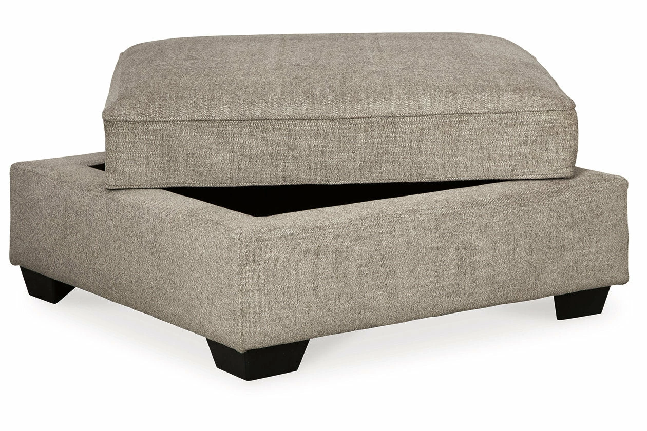 Whether your style is clean and contemporary or cozy modern farmhouse, this generously sized ottoman in a stone-tone neutral upholstery has the corner on style. Merging ultimate comfort with striking good looks, this alluring ottoman makes itself useful with a hidden storage area for this, that and the other.
