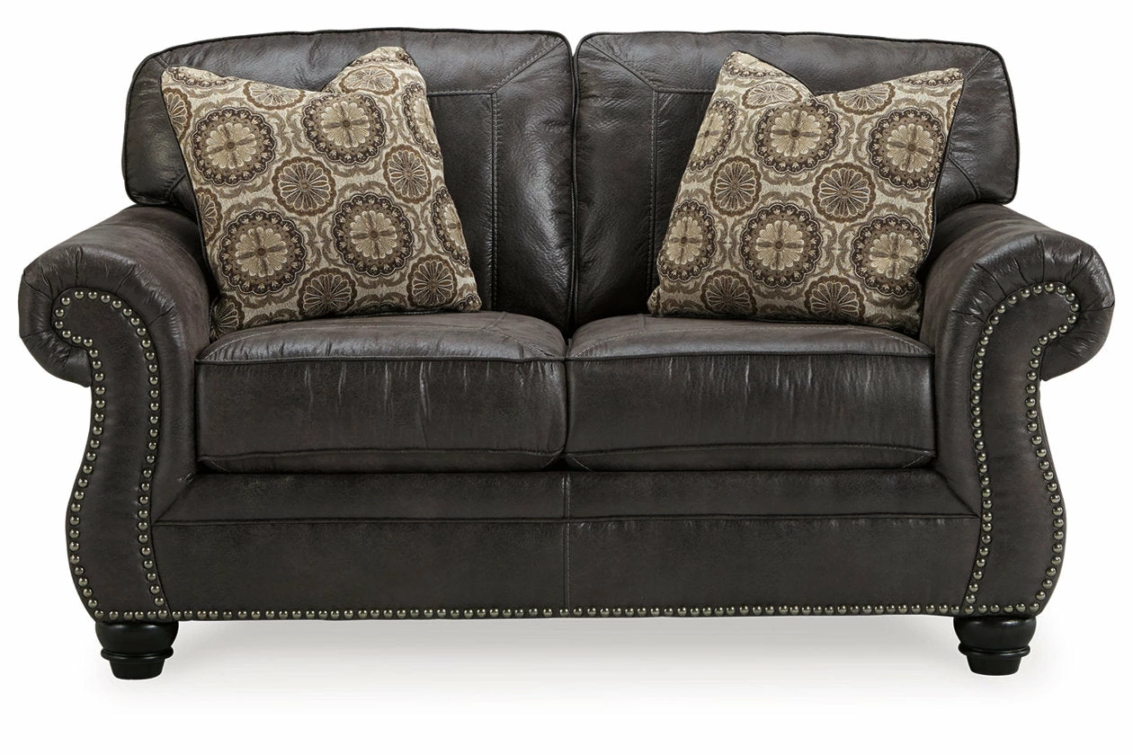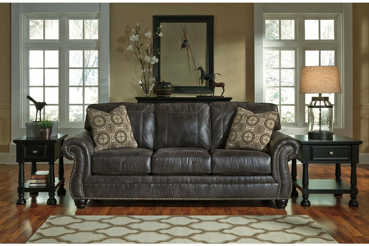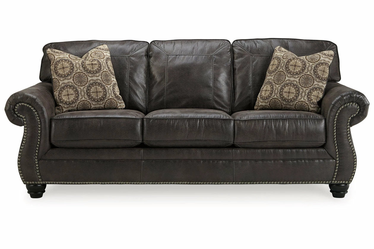 Revel in the ruggedly handsome look of leather—at a fraction of the cost—with this stylish sofa. Inspired by the rough-and-tumble beauty of the Southwest, it sports a “weathered” faux leather crafted for warmth, comfort and everyday living. A touch of nailhead trim adds the perfect punch of character.