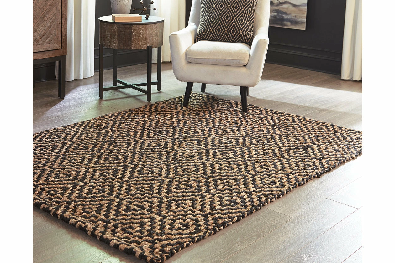 Get a feel for high design with this rug. Combining graphic elements with natural textures to elevate your space, this unassuming floor covering adds a dimensional quality that really pulls your room together.