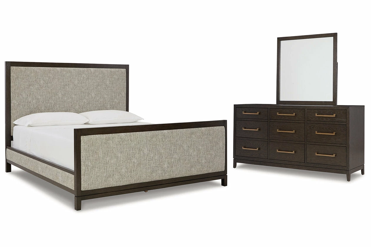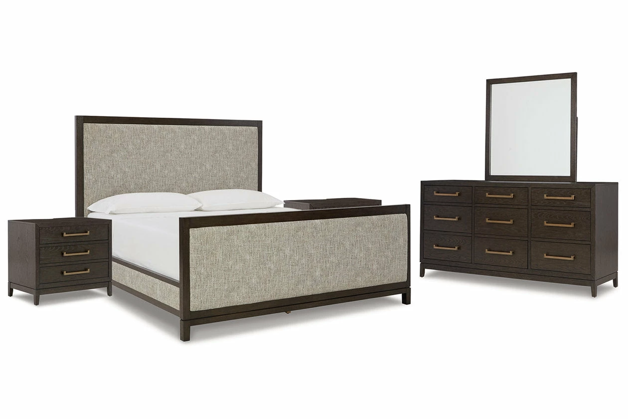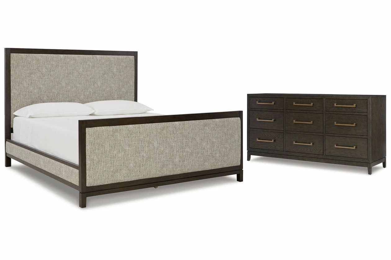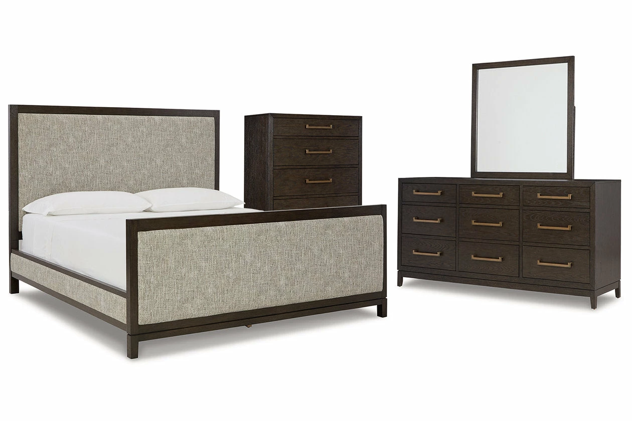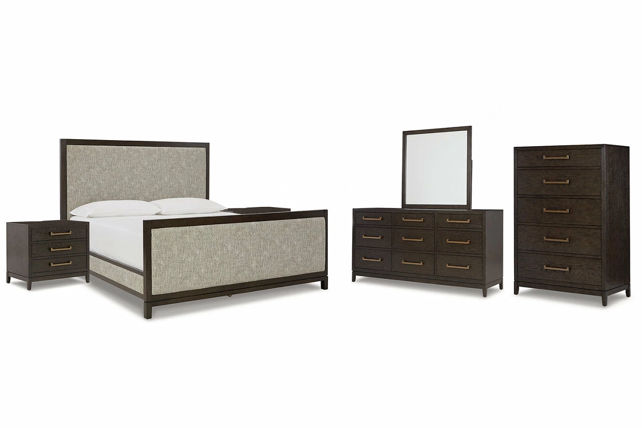 Dressed to thrill, this simply stunning bedroom package offers a high-design look at a down-to-earth price. Ultra-sleek lines are accentuated with a dark waxy brown oak-tone finish that’s so easy on the eyes. Beautiful from the inside out, for a timeless look that’s made to last.