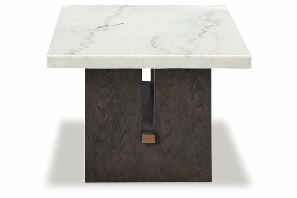 Dressed to thrill, this simply stunning coffee table offers a high-design look at a down-to-earth price. Ultra-sleek lines are accentuated with a dark waxy brown oak finish that’s so easy on the eyes. Clean-lined and modern, the plinth base and natural marble tabletop showcase quality craftsmanship and attention to detail. This table is the perfect centerpiece for a living room or family space, with a timeless look that’s made to last.