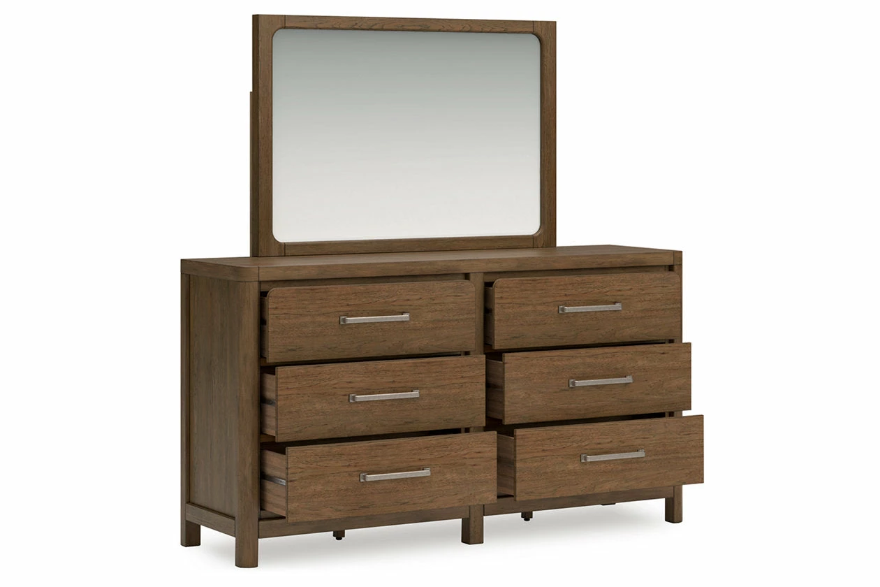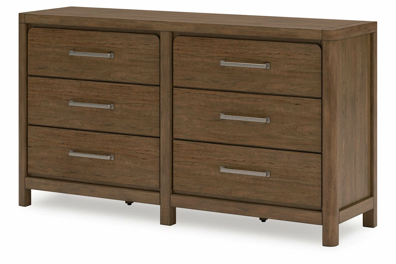 This dresser sits comfortably at the intersection of modern lodge and farmhouse aesthetics. Your warm and welcoming disposition is reflected in the charming architectural elements and light brown glazed finish. Even with its poise, the dresser remains practical. Smooth-gliding drawers tuck away necessities, defining your bedroom with reliable function and style.