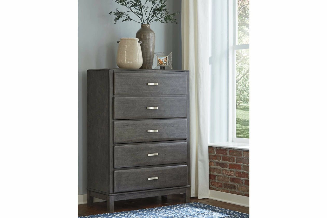 Contemporary style is shaping up beautifully. Designer elements are evident from every angle in this chest of drawers. Quality crafted with dovetail construction, the chest’s contoured drawers offer endless storage options. Sporting a distinctive weathered gray finish, it’s the epitome of casual elegance.