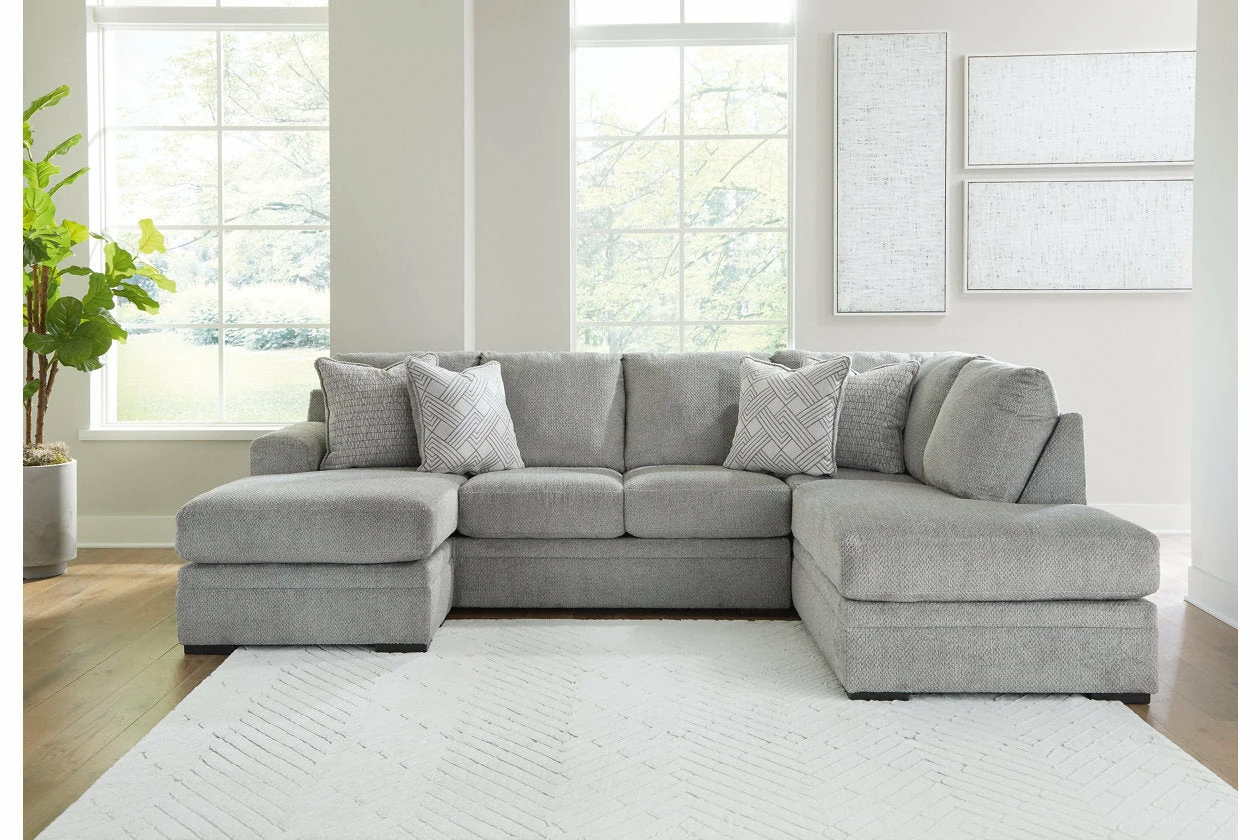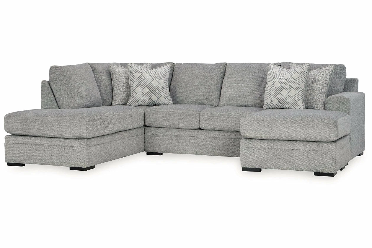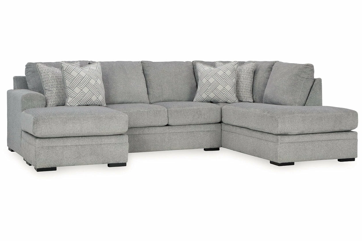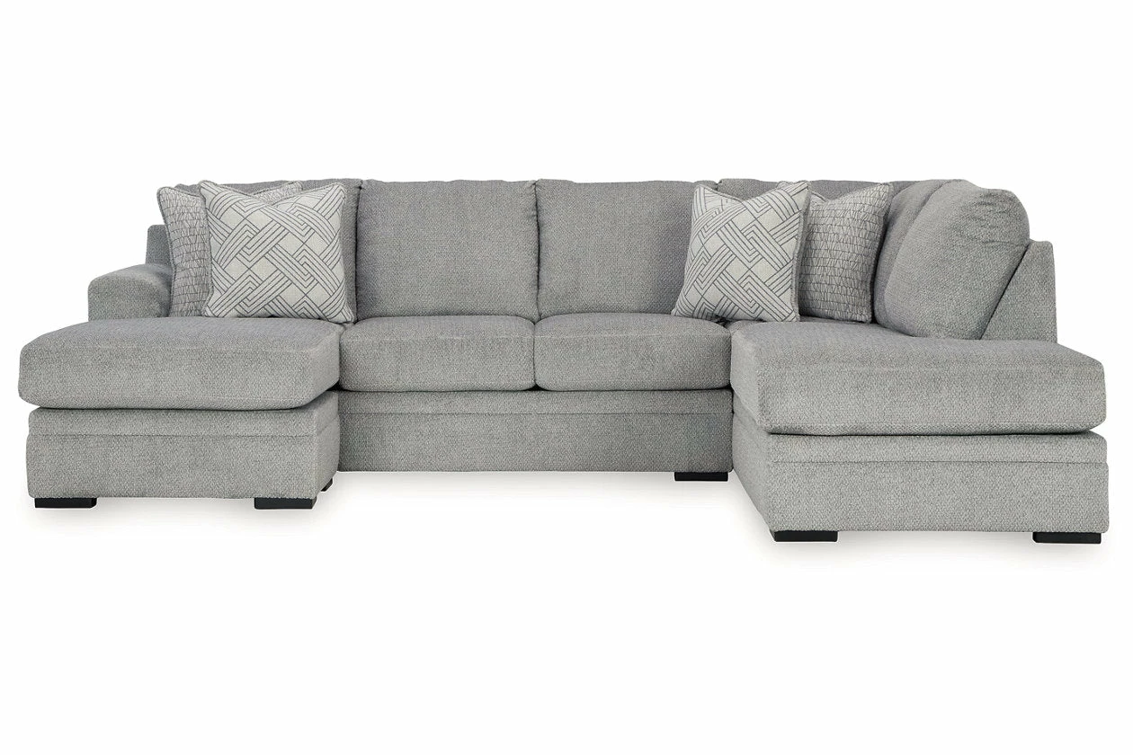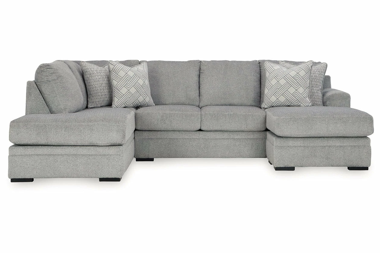 Don’t be limited by a lack of space. This sectional makes family movie nights and get-togethers with friends all the more cozy. With its double-chaise configuration, everyone has a spot to lounge. A trendy gray hue offers the contemporary style you crave. So sit back and relax—this functional piece is ready to indulge you with everyday comfort.