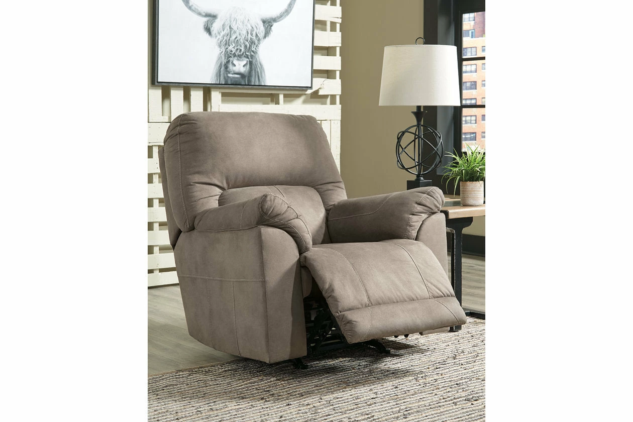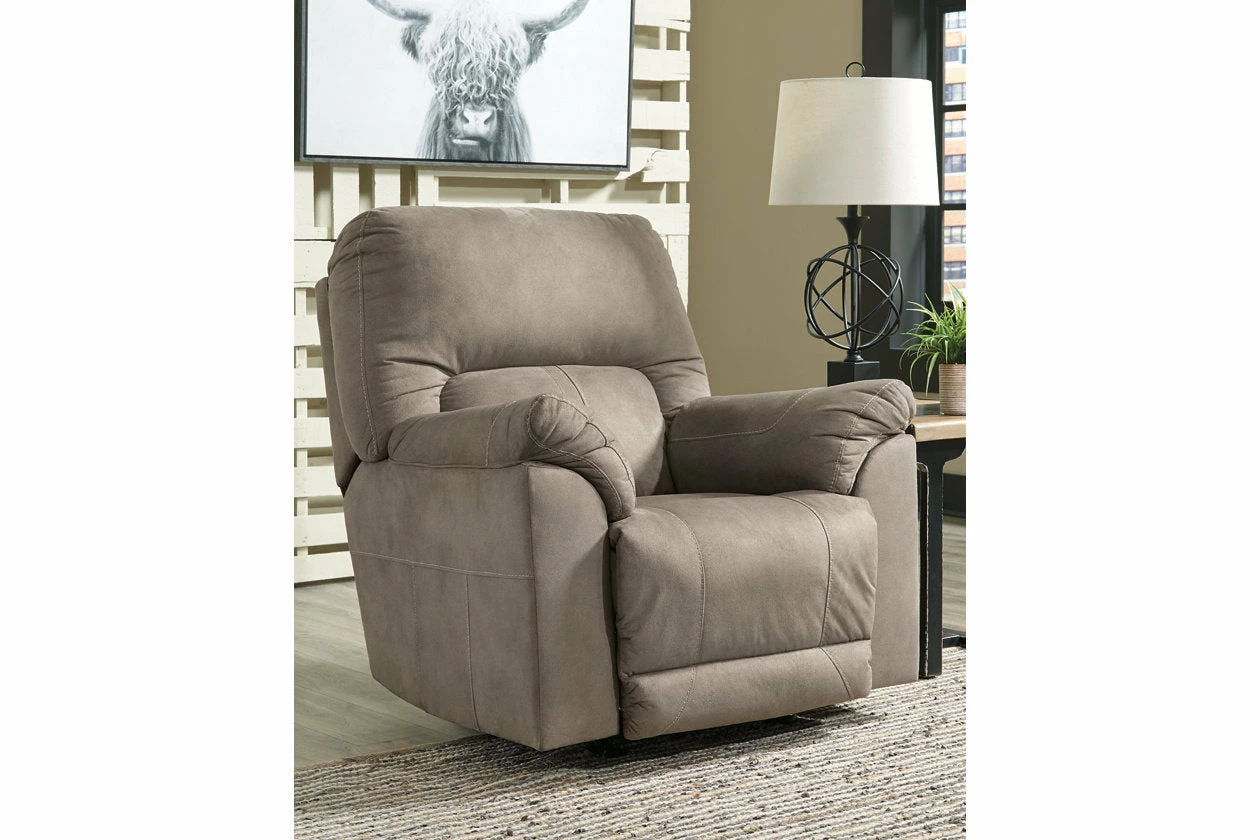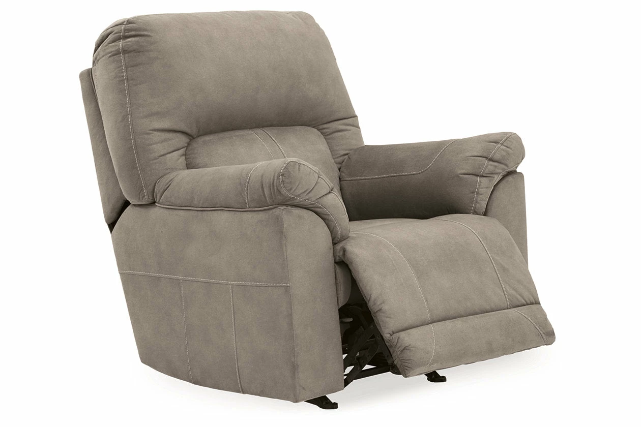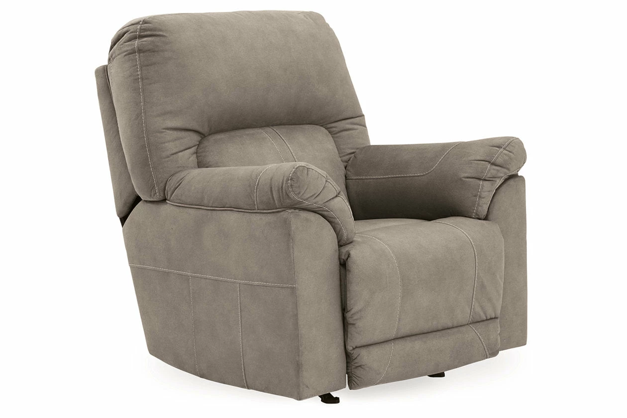 Strike a balance between the indulgent comfort you crave and the cool aesthetic you long for with this rocker recliner. Offering the cool look of weathered leather, the feel-good slate-tone upholstery takes neutral to new heights. Simply chic divided back tailoring and jumbo stitching are among the finer details that make all the difference.
