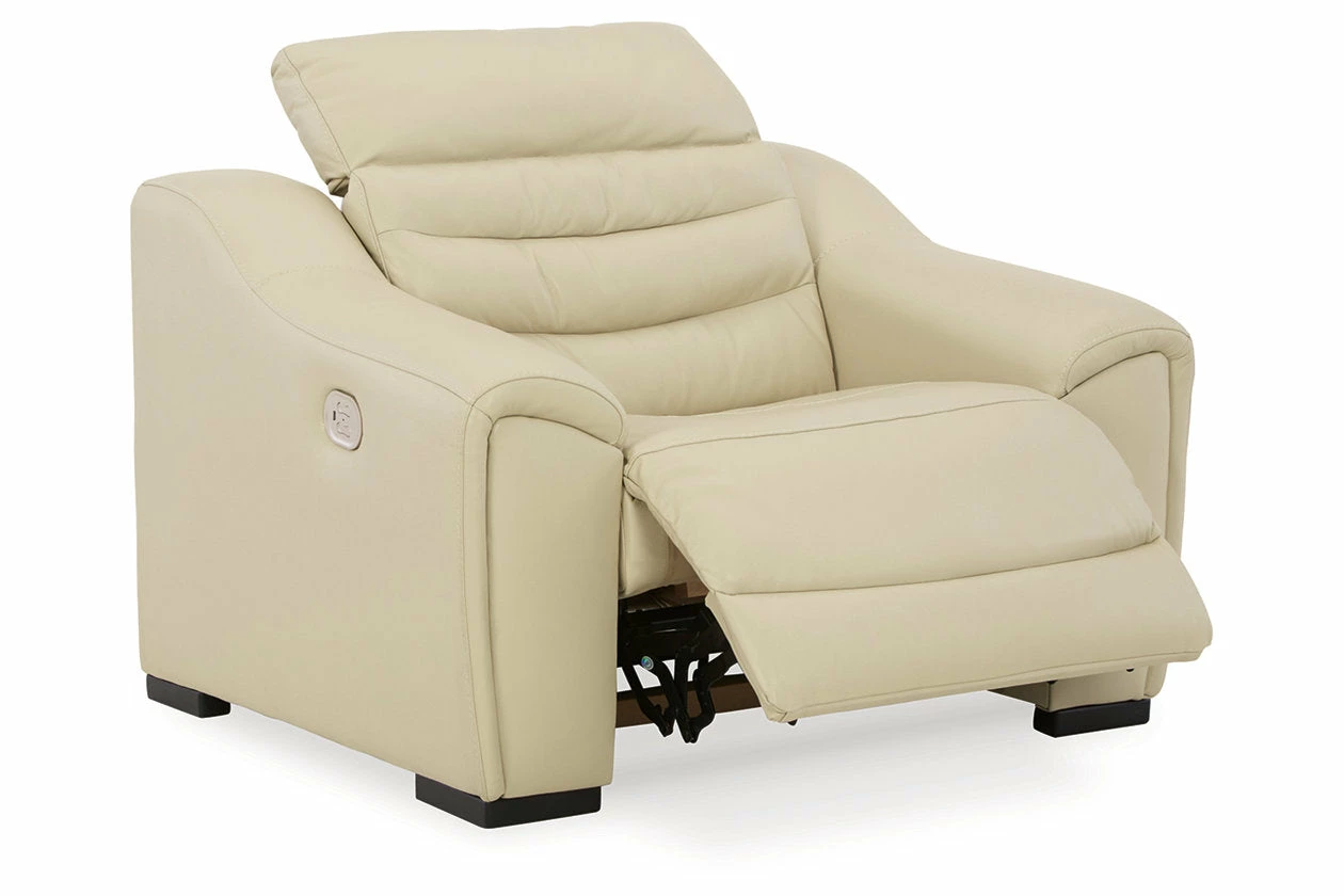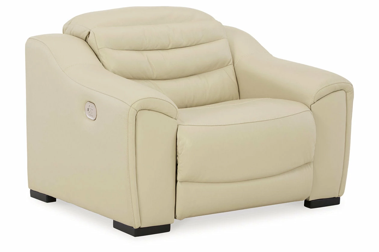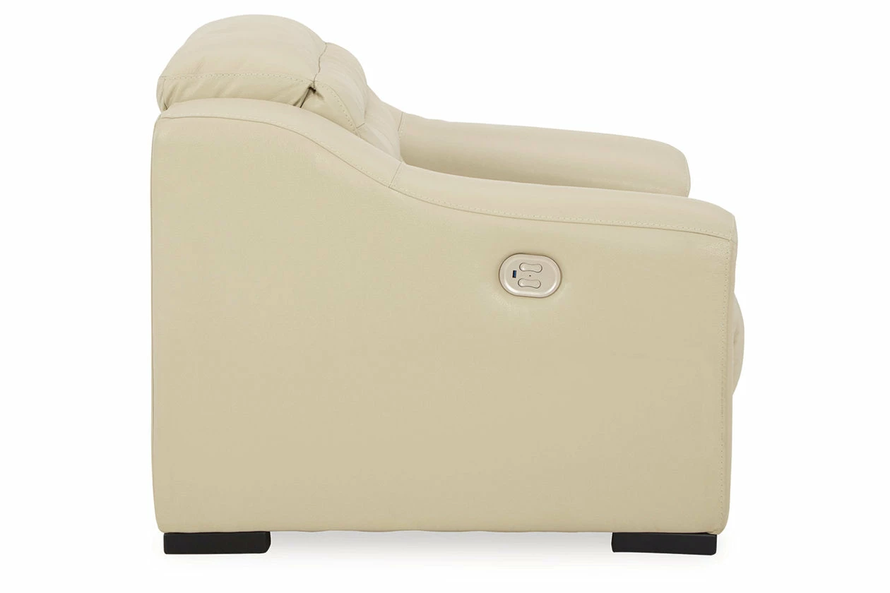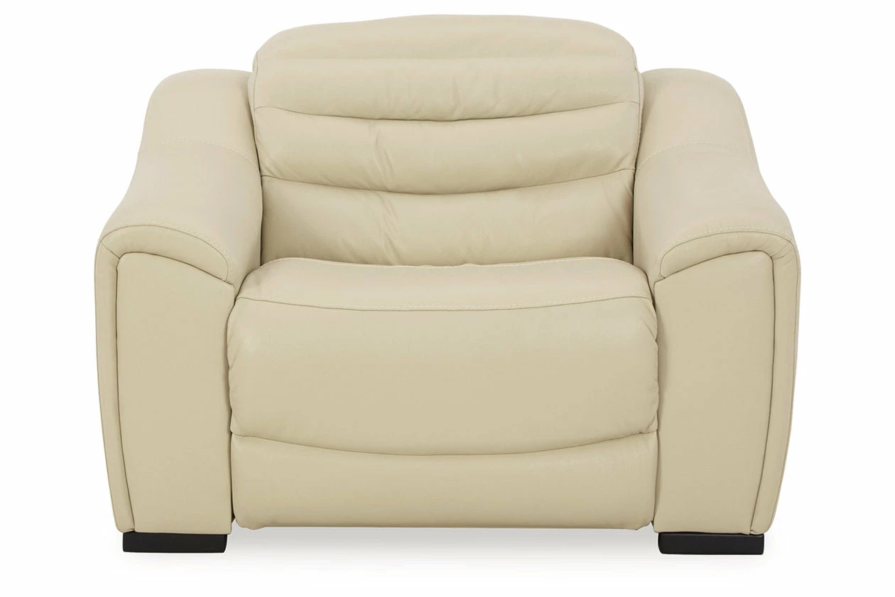 For those seeking to curate a living room retreat that offers superior comfort and a contemporary aesthetic, this sleekly designed power recliner will become your favorite source of at-home serenity. Rest on combination leather and faux leather upholstery, and use the one-touch power control to recline and adjust the headrest with ease. As you recharge after a long day, your devices can too with USB charging. This recliner is visually enticing in a stunning cream color, with slope track arms and stitched detailing on the back to enhance its modern appeal.