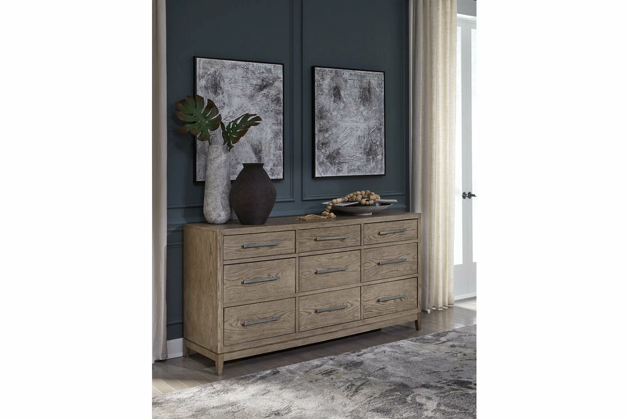 You want your room to reflect your refined sensibilities while remaining forward-thinking in design. The simple silhouette of this dresser opens the door to a bedroom with the curated look and subtle flair you desire. Striking metal bar pulls in a light pewter tone are functionally fashionable against the piece’s elegant waxy gray finish. Ample drawer space allows you to store in streamlined style.