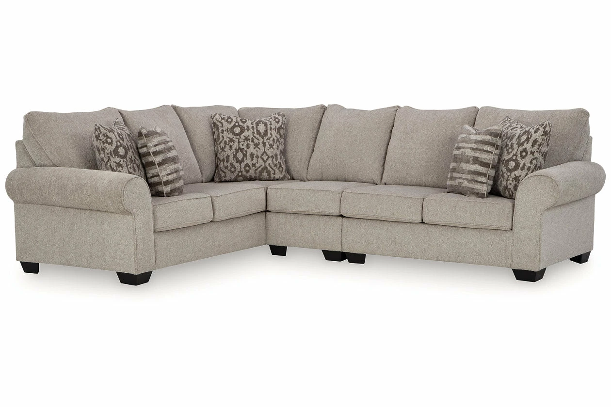 Whether your vision is traditional or cozy farmhouse, this sectional has the corner on style. Merging ultimate comfort with striking good looks, this chic seating includes coordinating accent pillows for that much more feel-good allure.