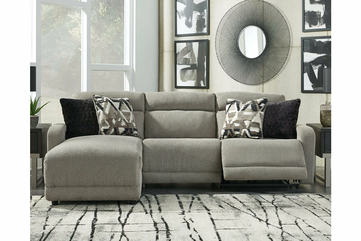| 3-Piece Power Reclining Sectional with Chaise | 108″ | 65″ | 39″ |