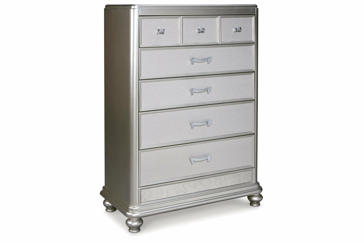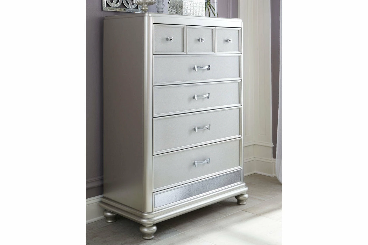 This chest of drawers allures with the glitz and glam befitting silver screen queens. Exquisite frame’s metallic tone channels that Hollywood Regency flair you’ve been dreaming of. Faux shagreen texturing on the drawer fronts, a touch of bejeweling on the sculptural pulls and a strip of mirror sheen elevate this chest of drawers to interior fashion’s A list.