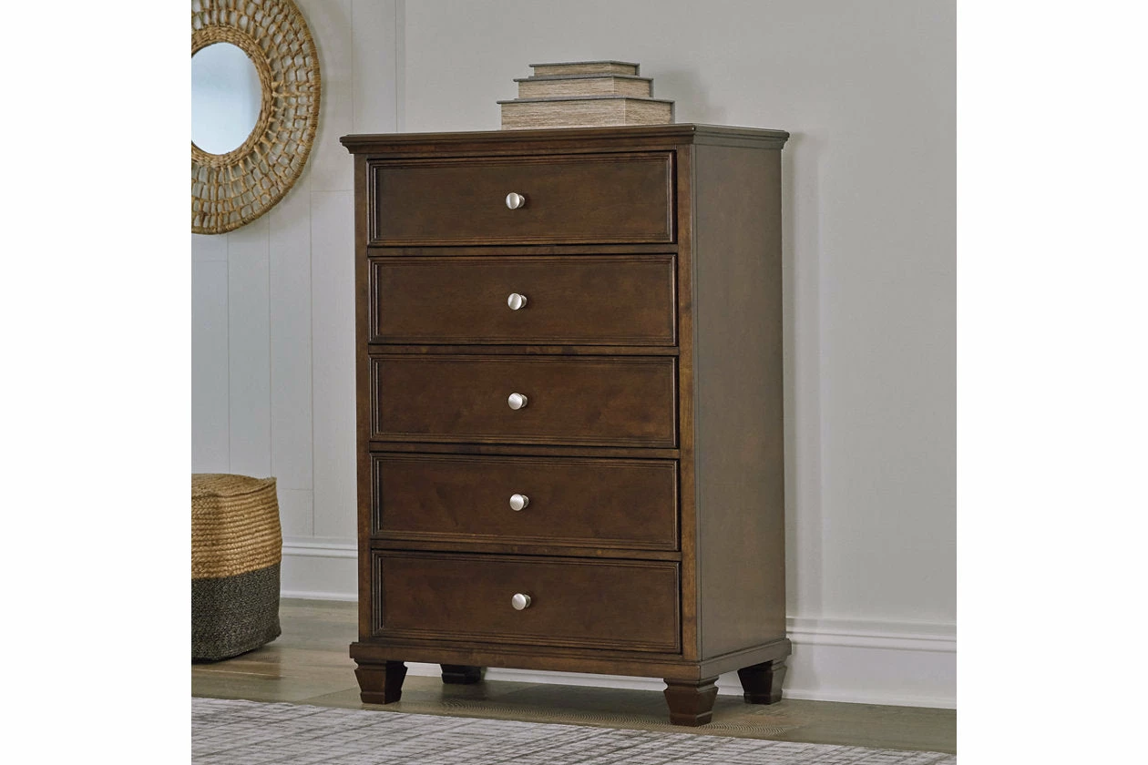 The casual design of this chest of drawers introduces a time-honored look to your restful retreat. Spacious enough to hold all your essentials, the beautifully crafted piece is built to last. Distinctive framing gives the drawer fronts brilliant dimension. Whether your personal aesthetic is modern farmhouse or American classic, this chic chest offers a warm, rich presence that’s always right at home.