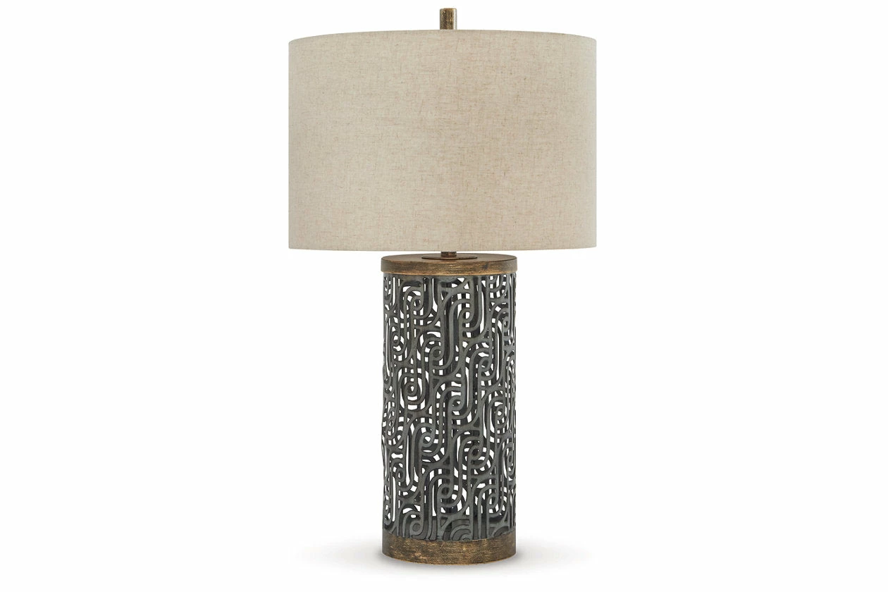 The open concept swirls of this table lamp bring presence and intrigue to any room. Antique gray and gold finished metal contrast beautifully against the light drum shade. Surely, this is contemporary style fully realized.