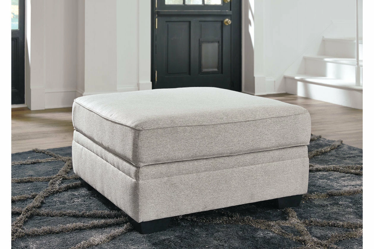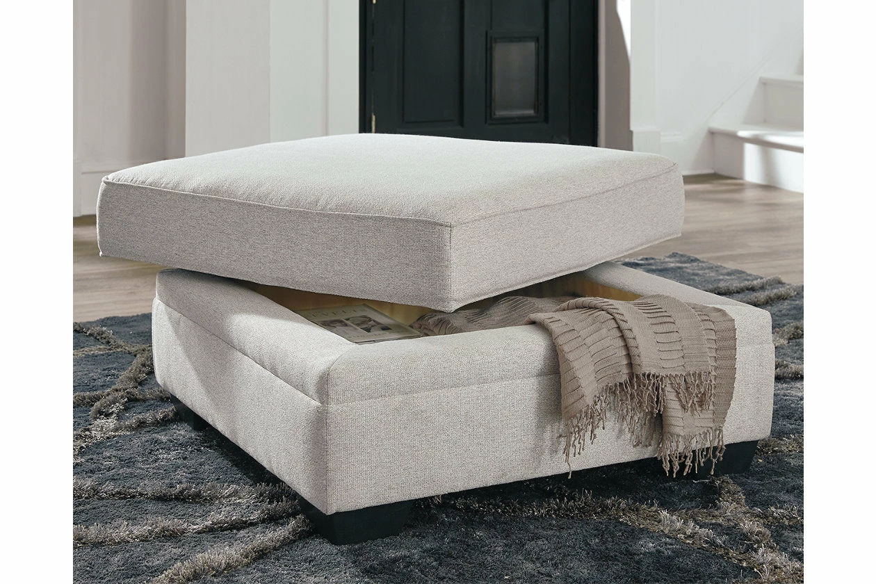 Sit back and kick your feet up in style on this ottoman with storage. Its clean-lined design pairs well with your casual and transitional furniture. The soft, tight woven texture and chalky beige hue are so in the now. Have unexpected guests? Simply lift the top and throw in clutter for a quick clean-up.