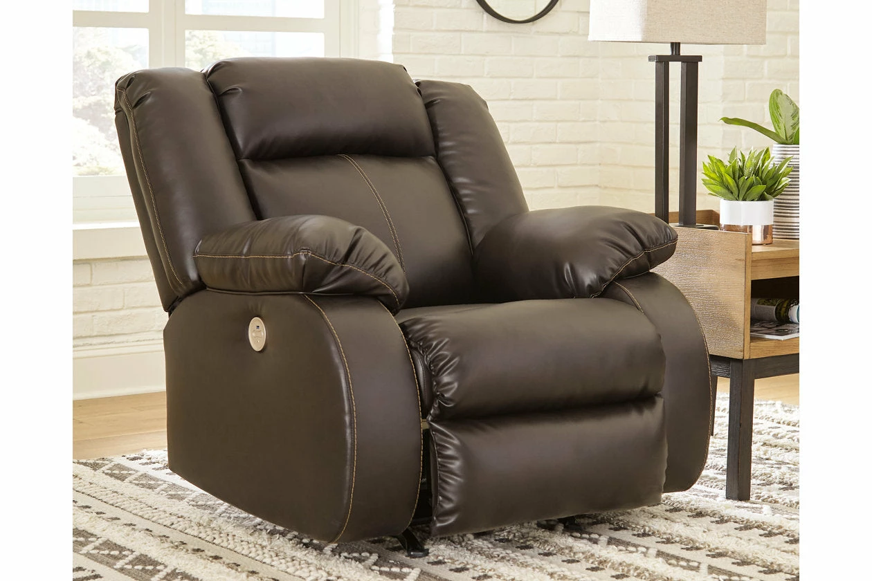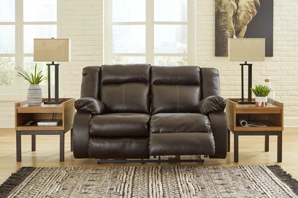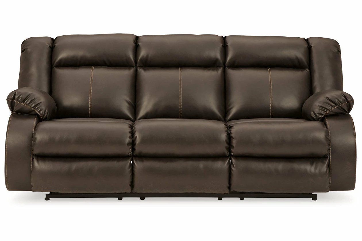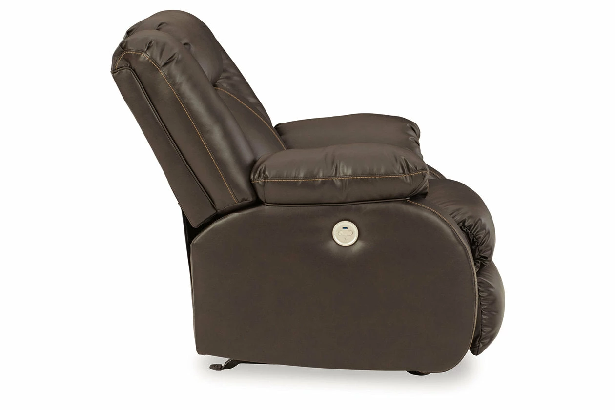 If highly contemporary looks and a heavenly feel sit well with you, rest your eyes on this reclining power loveseat. Decadently soft, the easy-care faux leather upholstery is enriched with jumbo contrast stitching and dramatic cut-and-sew lines for fashion-forward flair. Radius cut arm frame adds cool, curvaceous interest. At your fingertips: one-touch power control with a zero-draw USB plug-in that’s not only convenient but also energy efficient. When it comes to high style at a down-to-earth price, this power reclining loveseat really brings it home.