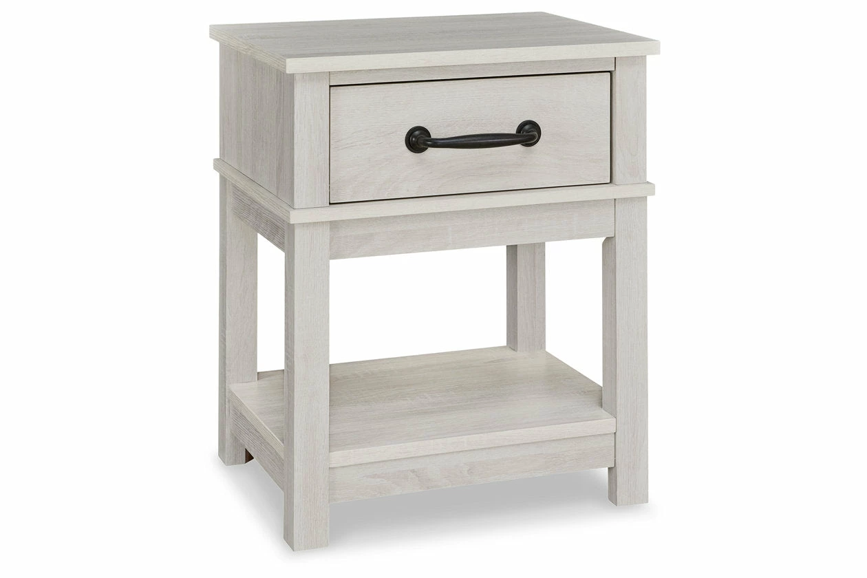 Clean lines and a white stained color add light to your room with this nightstand. The drawer and open shelf allow for versatile storage or display options, making this nightstand a functional favorite.