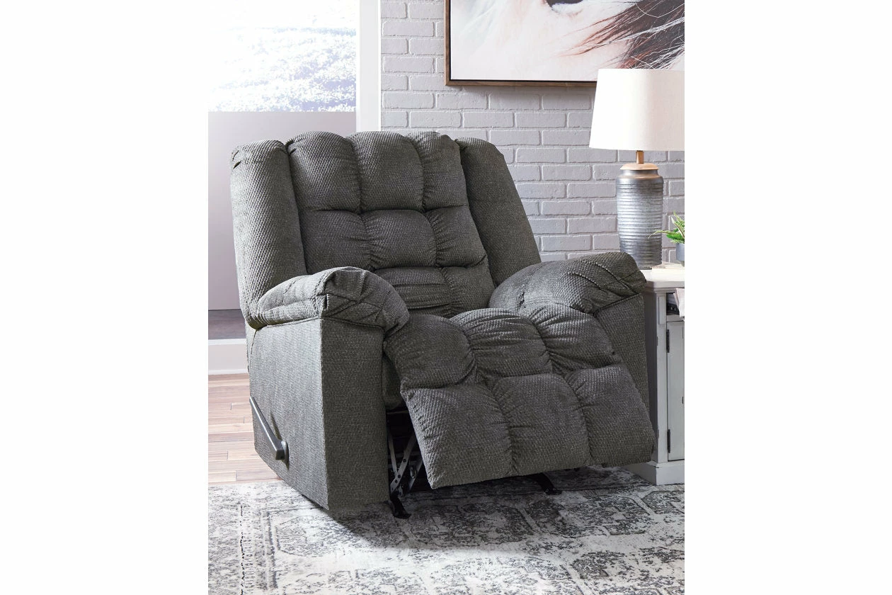 Intensify comfort in style with this rocker recliner. Simply pull the chair lever to recline and with the hand-held remote, heat the seat and put on the massage. Enjoy the super plush feel of the tufted upholstery and pillow top armrests—what a way to unwind and relax.