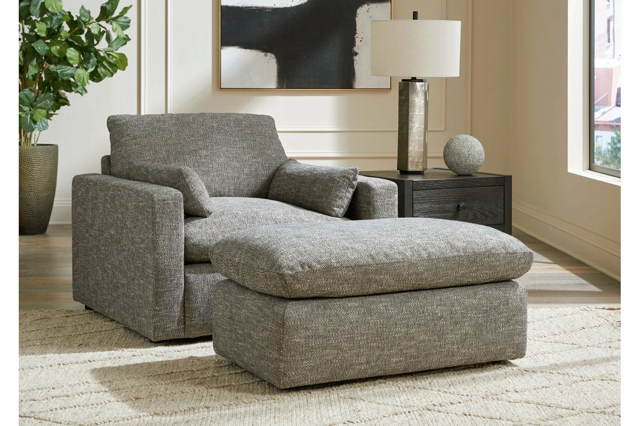 On the days when rest and relaxation seem out of reach, this seating package provides a positively plush perch. Its feather-fiber blend cushions invite you to float away in cloud-like comfort. Striking granite-hued upholstery and a streamlined frame grant this cozy set a look well-suited to contemporary spaces.