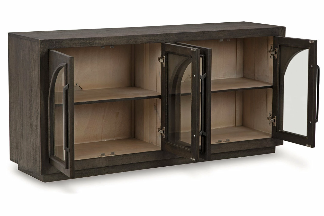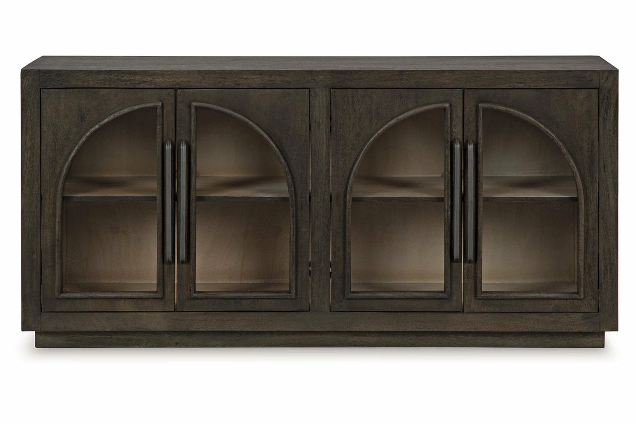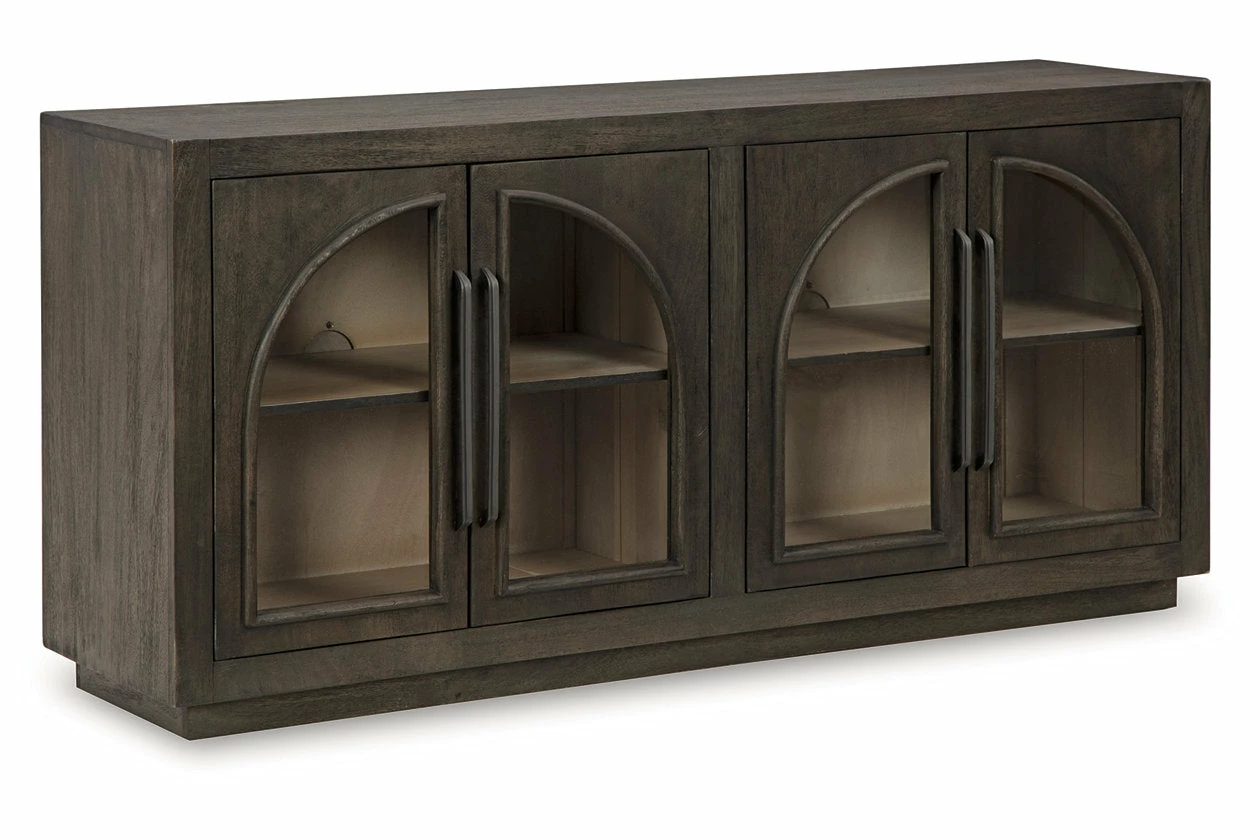 Bring a timeless look to your home or office with this accent cabinet. Traditional lines and a distinctive two-tone finish lend seriously classic vibes to this piece. Arched glass door fronts and two shelves make it easy to display and store in stunning style.