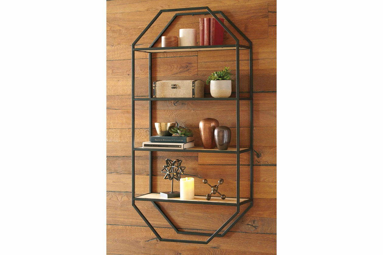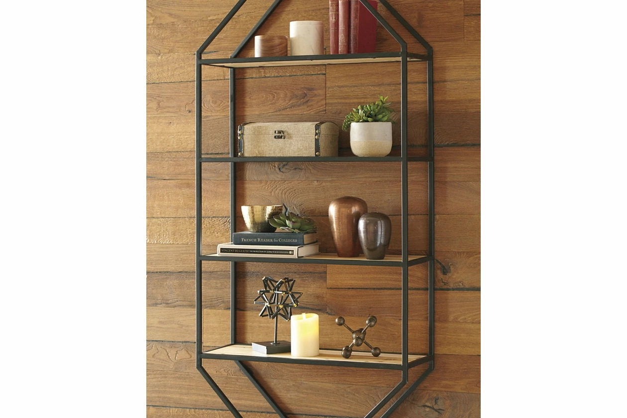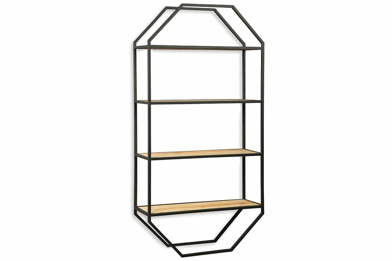 Say goodbye to a blank wall and hello to this wall shelf. Four spacious wooden shelves are just waiting to be decorated. Black finished metal adds an industrial feel to the minimalistic design. Hang it up and place succulents for an urban vibe.