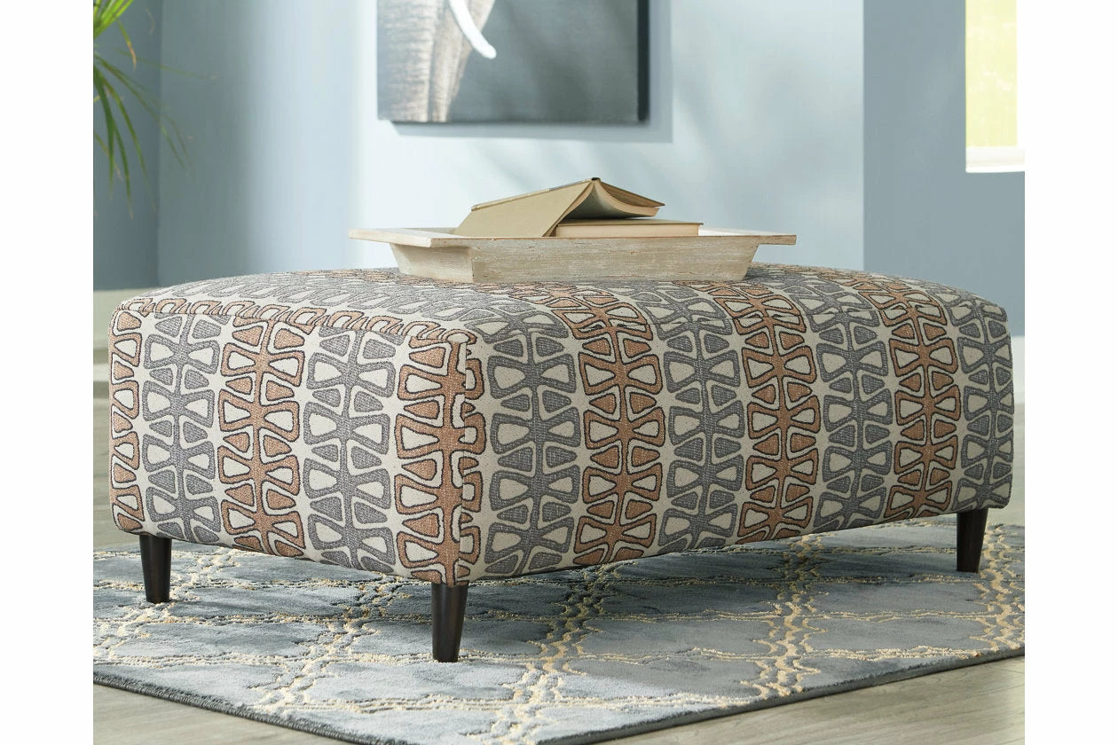 Master the art of mid-century inspired design with this oversized accent ottoman. Sporting a crisp, clean profile, tapered feet and a striking pattern, it has a retro-chic look that feels right on trend.