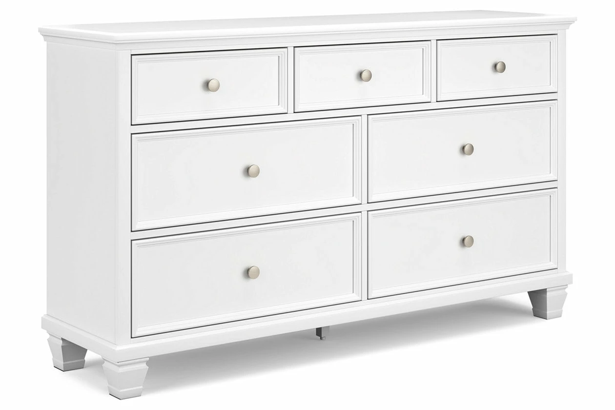 This dresser exudes timeless casual design that’s ready to define your personal space. Its clean, contemporary white finish, framed drawer fronts and round metal knobs easily adapt to a variety of interiors. Featuring seven storage drawers with dovetail construction and traditional tapered feet, this piece is sure to bring elegant simplicity to your bedroom.