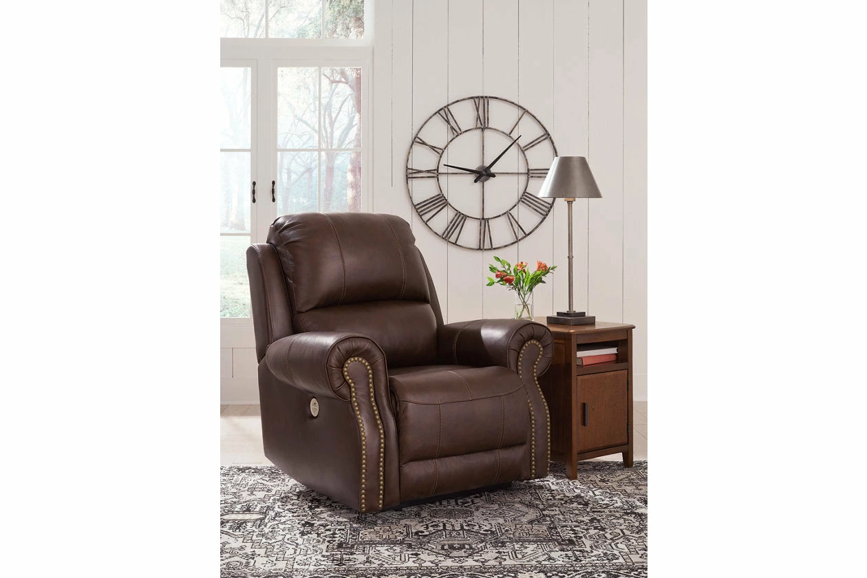 This is just where you should be when it’s time to downshift for the day. Loaded with relaxation and streamlined for high style, this power recliner cradles you from head to toe. You can easily control its reclining function with the touch of a button, making it a breeze to find your perfect level of comfort. With its vintage design and modern features, this recliner is the perfect addition to any home or office.
