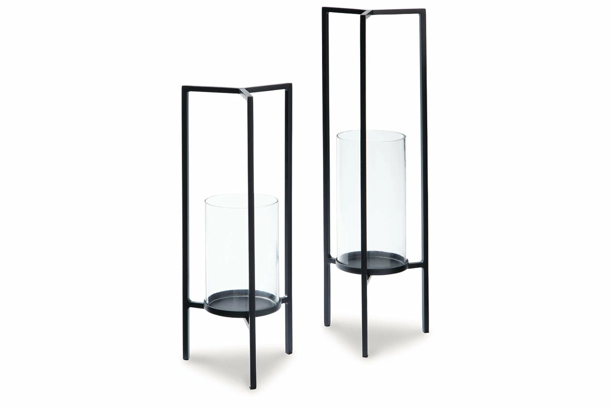 Create a romantic aura in your home with this set of candle holders. Featuring a metal frame encasing a glass hurricane, this simple accessory is the perfect choice for contemporary and rustic decors.