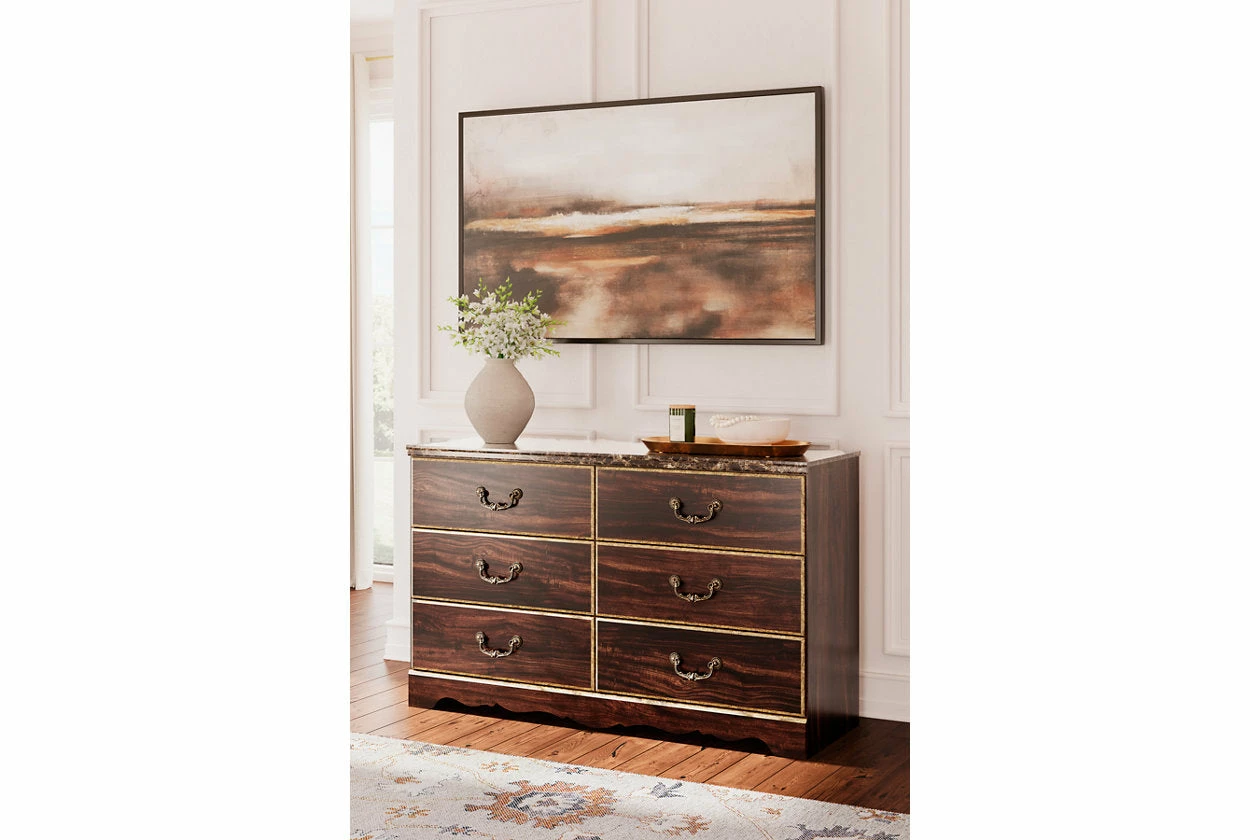 Timeless and classic, this dresser offers a grand design accented with rich hues and eye-catching details. Stately from every angle, its sophisticated elements blend together to display your love of the traditional aesthetic.