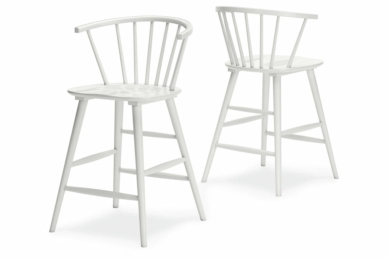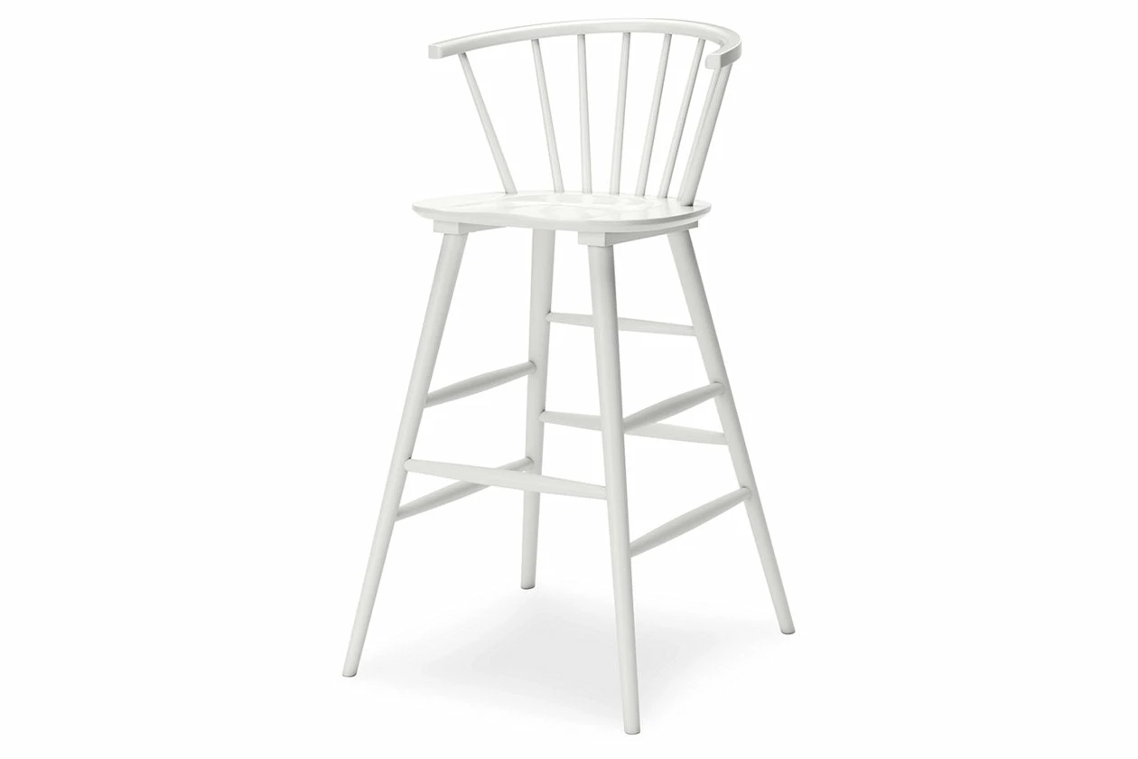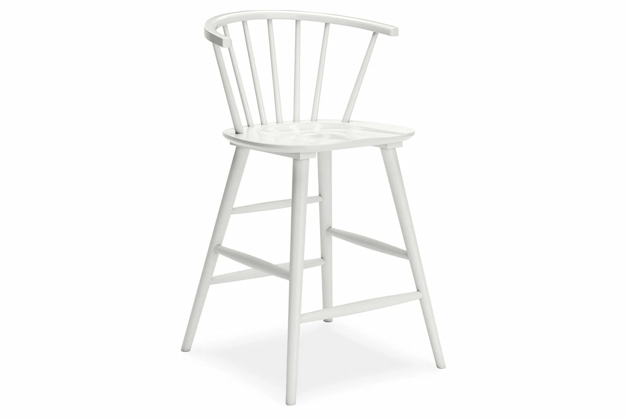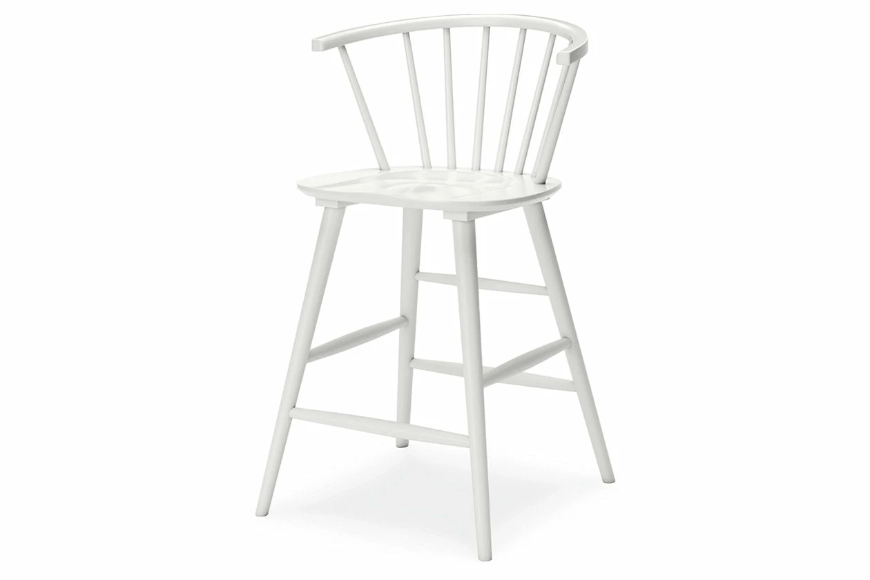 Bring light to your dining area with clean lines and a bright, white finish. This counter height stool sports a low spindle back with a contoured seat for beautiful simplicity. The functional piece marries minimalism with big style for a delightful combination.