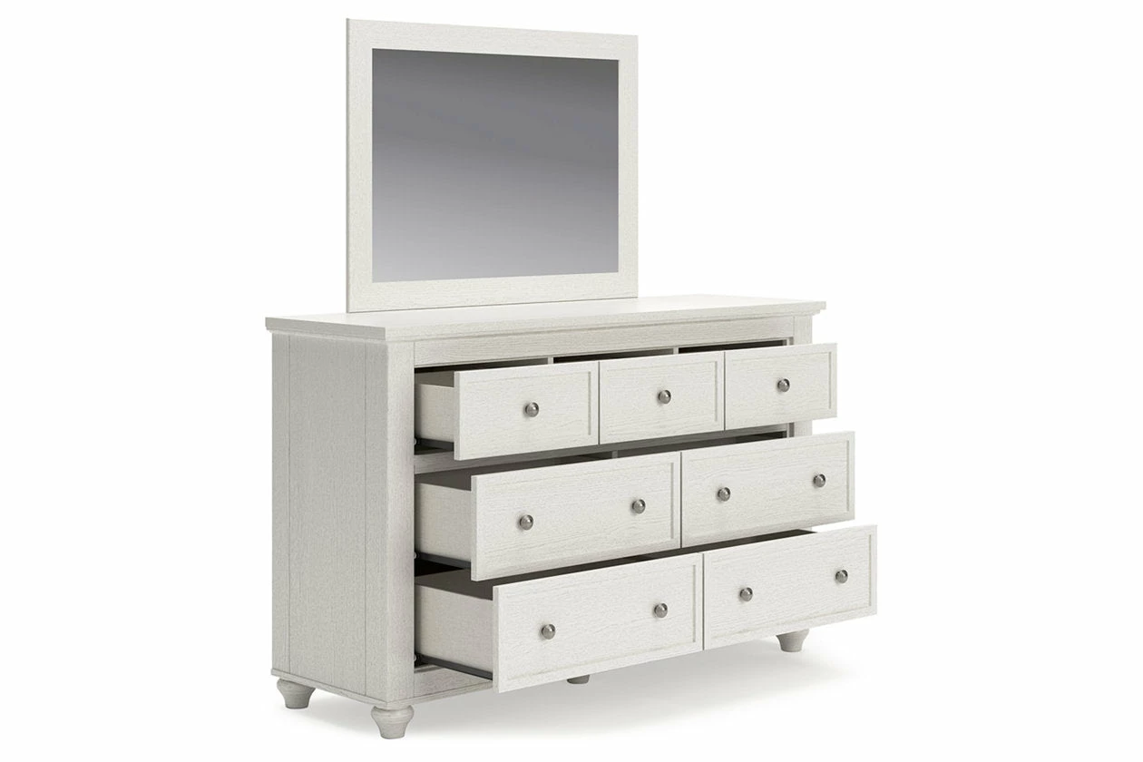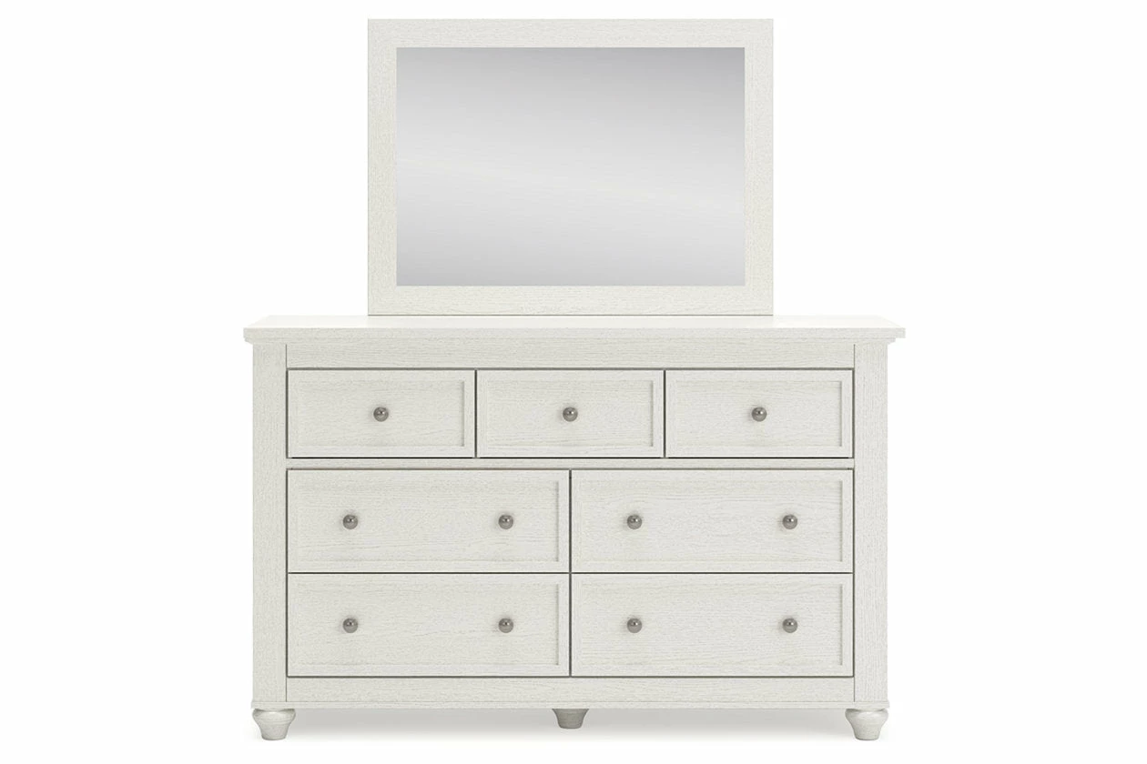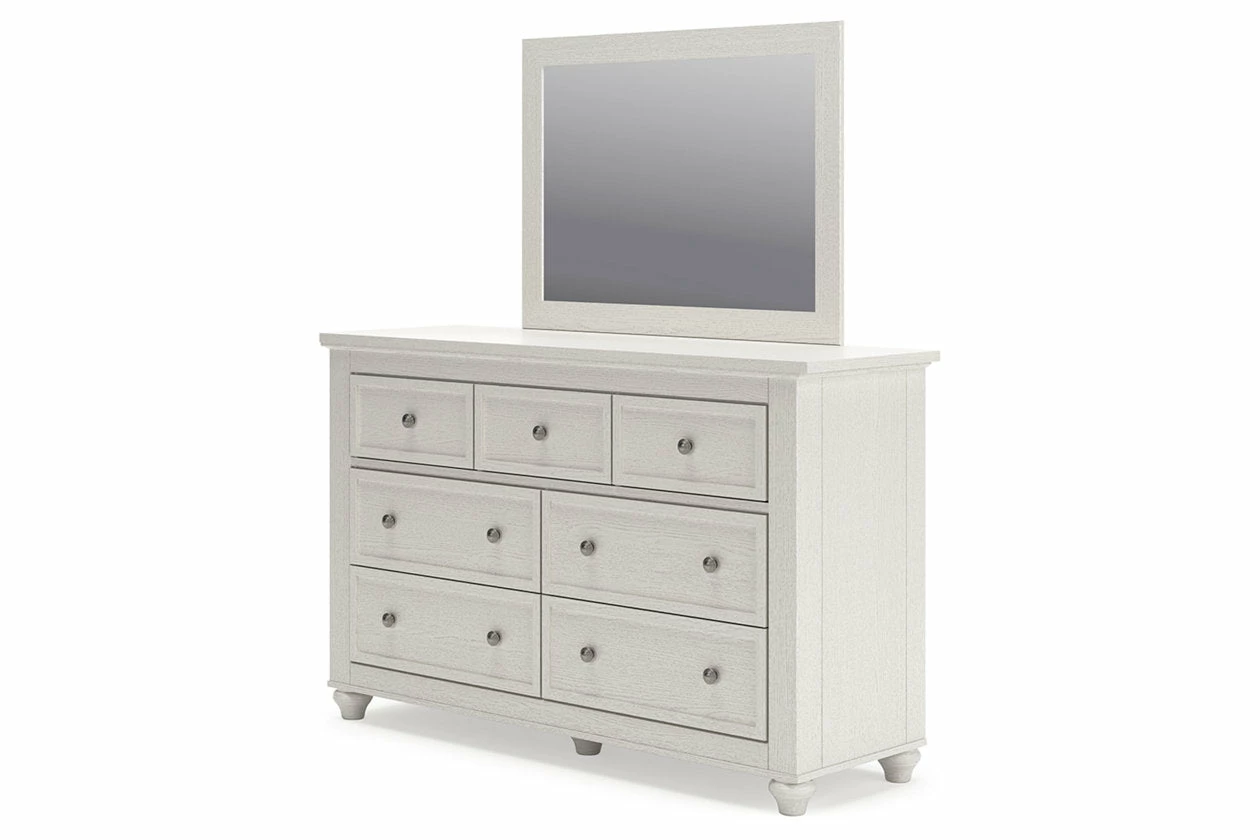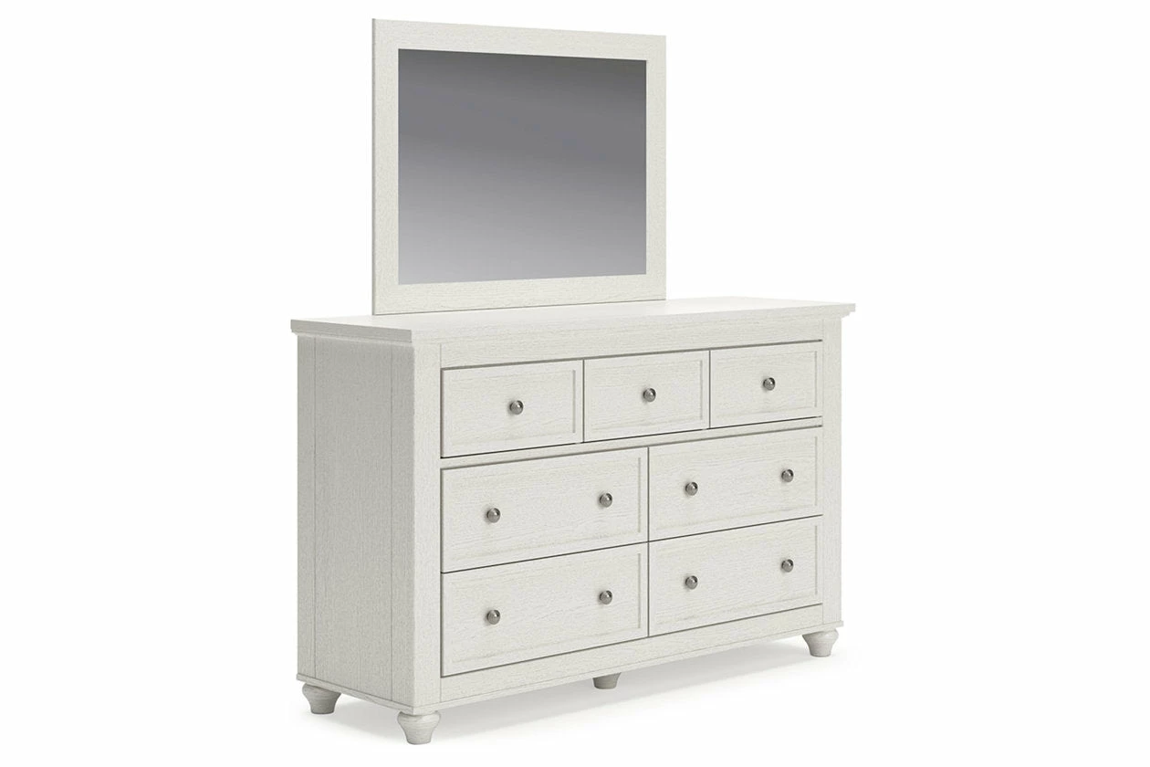 Brighten up your bedroom with this dresser and mirror. This set delights with a soft white finish and cottage-quaint styling. When done in the right color, even a simple design can take on a fashionable flair.