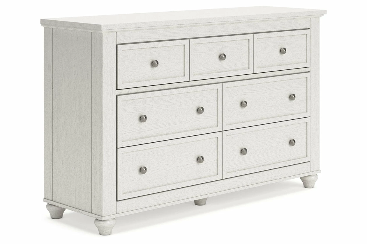 Brighten up your bedroom with this 7-drawer dresser. The piece delights with a soft white finish and cottage quaint styling. When done in the right color, even a simple design can take on a fashionable flair.