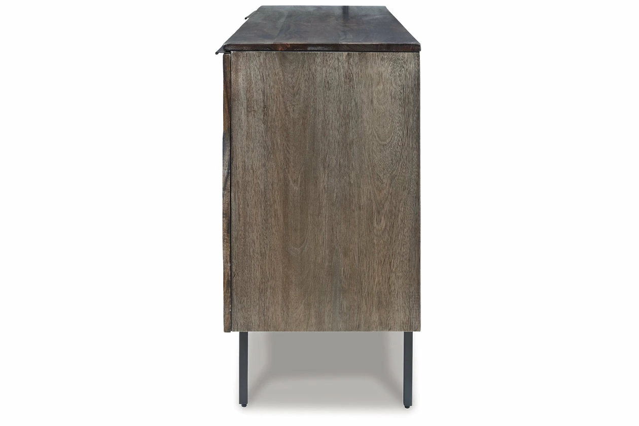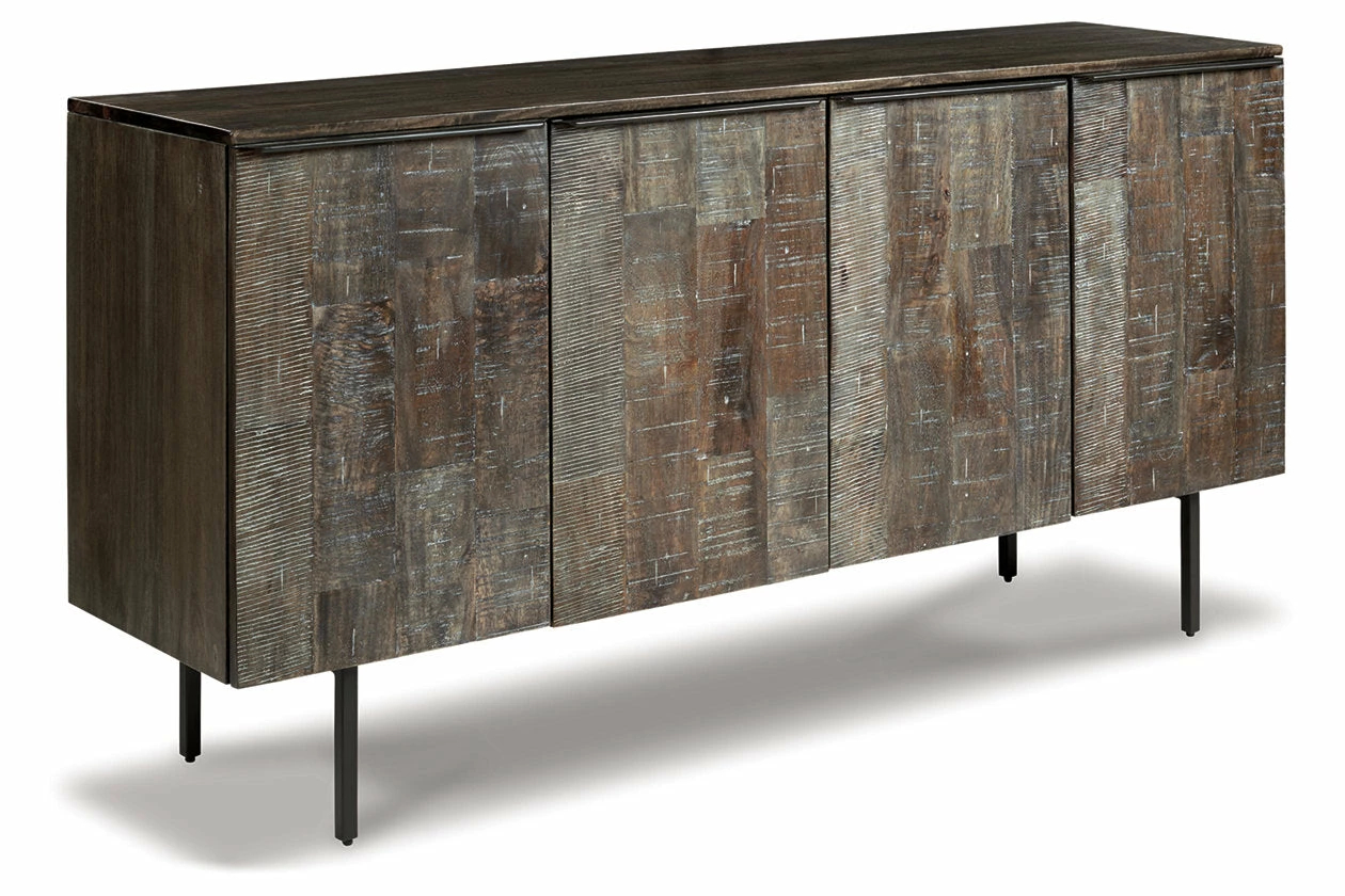 With this accent cabinet, you get the best of worlds: the weathered look you love—and the ultra-modern lines you crave. Crafted of solid wood enriched with an antique gray finish, this simply chic accent cabinet wows with rough sawn plank door fronts and concealed metal pulls in a gunmetal finish.