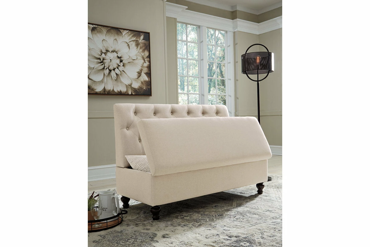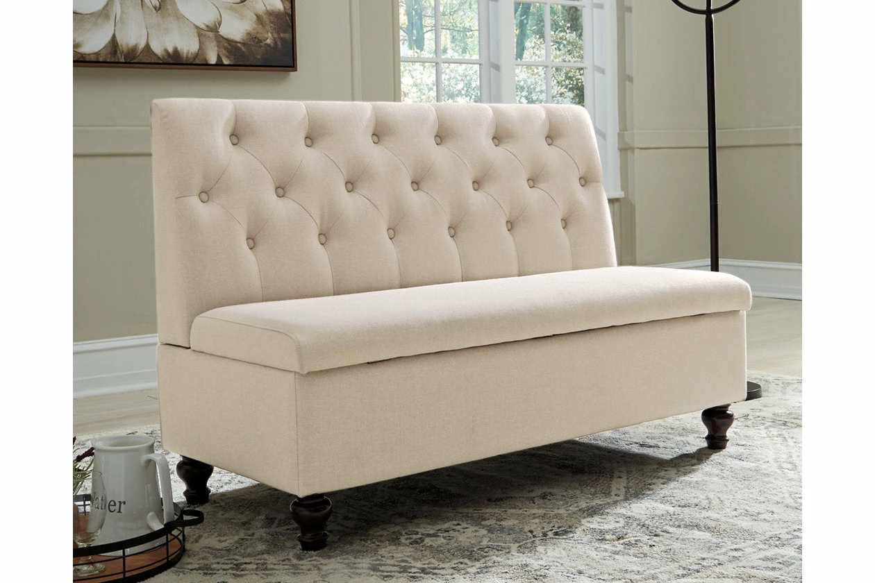 Finally, a storage option that’s a fabulous focal point. Whether gracing an entryway or adding a finishing touch to a family room, this storage bench is sitting pretty. Its armless styling is especially space efficient. The bench’s deep button tufting lends such a luxurious look.